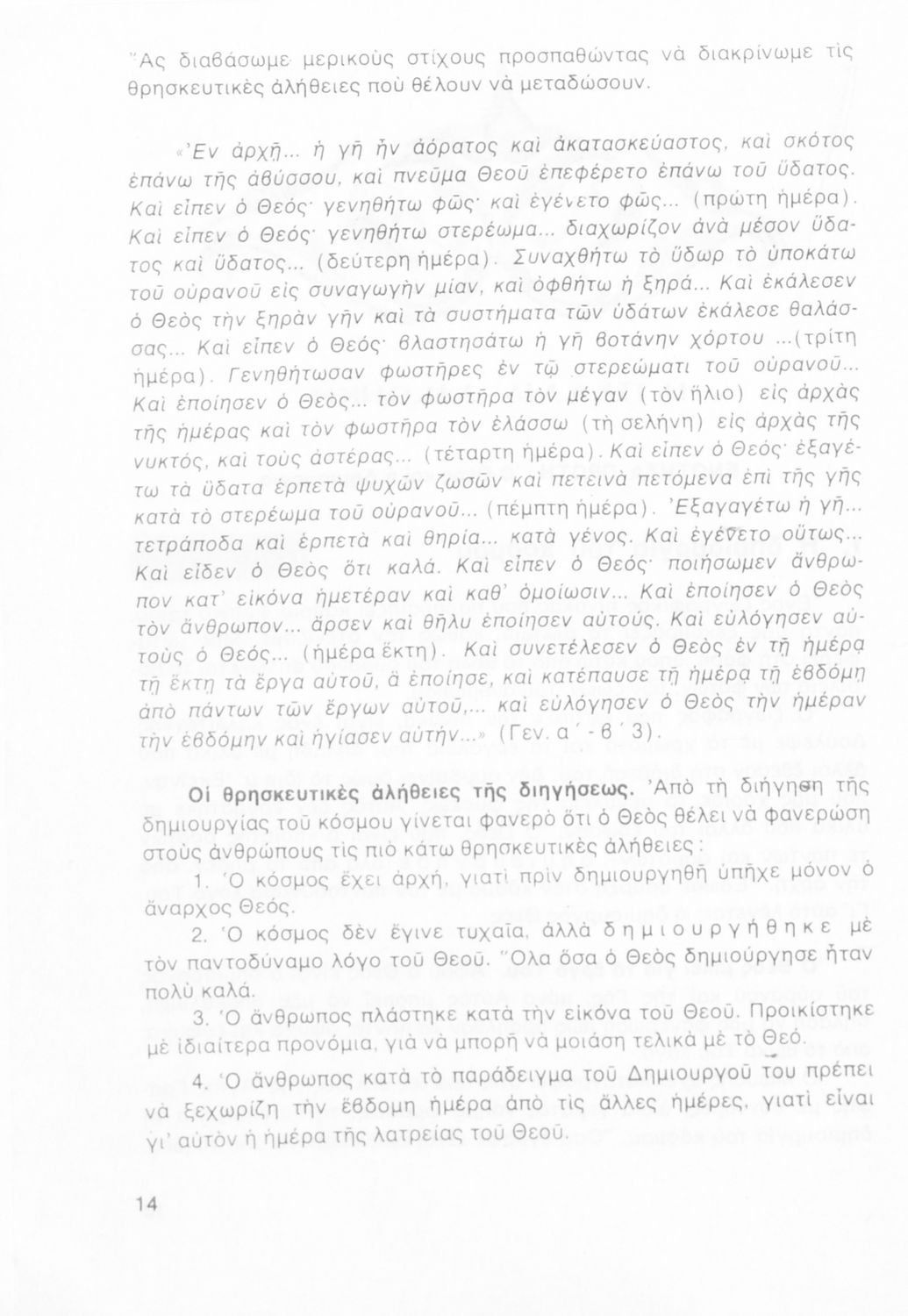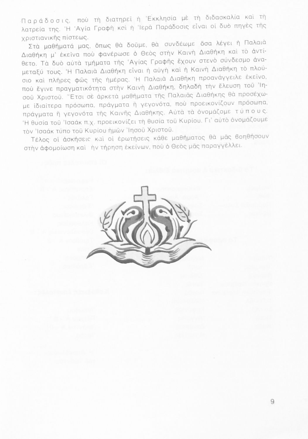 Σχολικό εγχειρίδιο Θρησκευτικών Γυμνασίου που αποτελεί μια εξιστόρηση της Παλαιάς και Καινής Διαθήκης από την δημιουργία του κόσμου μέχρι τη δράση των Αποστόλων και ειδικότερα του Απόστολου Παύλου.