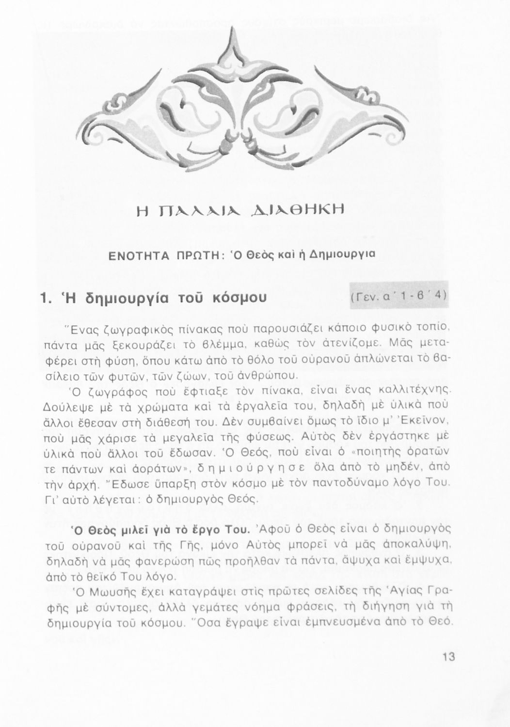 Σχολικό εγχειρίδιο Θρησκευτικών Α΄ Γυμνασίου που συνιστά μία εξιστόρηση της Παλαιάς και Καινής διαθήκης Διαθήκης από τη δημιουργία του κόσμου ως την ανάληψη του Ιησού Χριστού.