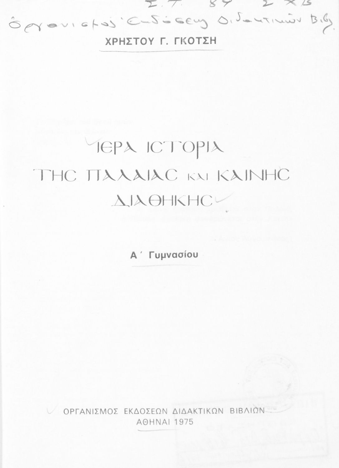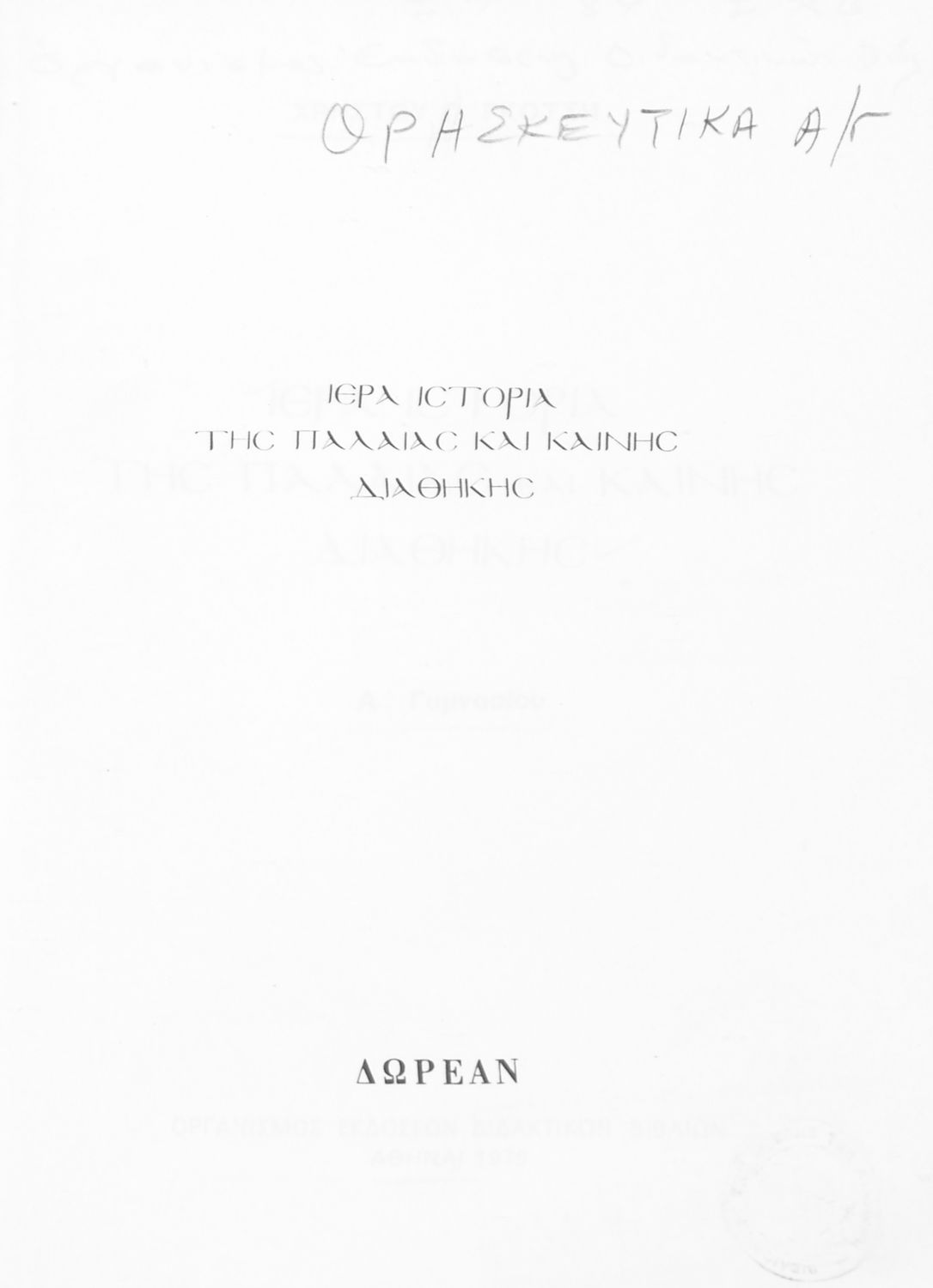 Τίτλος: Ιερά Ιστορία της Παλαιάς και Καινής Διαθήκης Α ́ Γυμνασίου