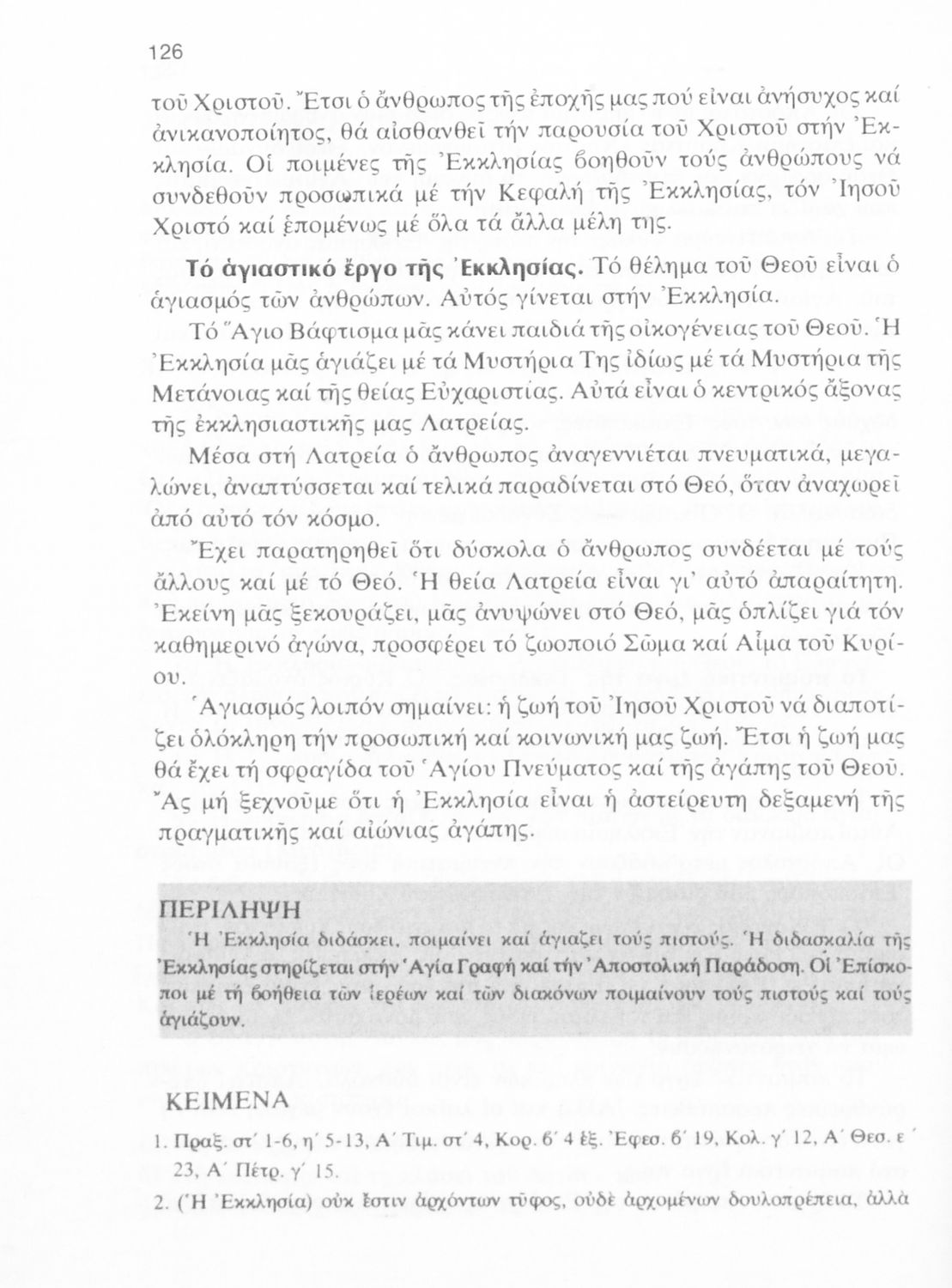 Σχολικό εγχειρίδιο Θρησκευτικών για την Ε΄ Γυμνασίου. Στο βιβλίο αναλύονται οι βασικές αλήθειες της πίστης και περιλαμβάνονται στοιχεία για τη λειτουργική λατρεία και ζωή της Εκκλησίας