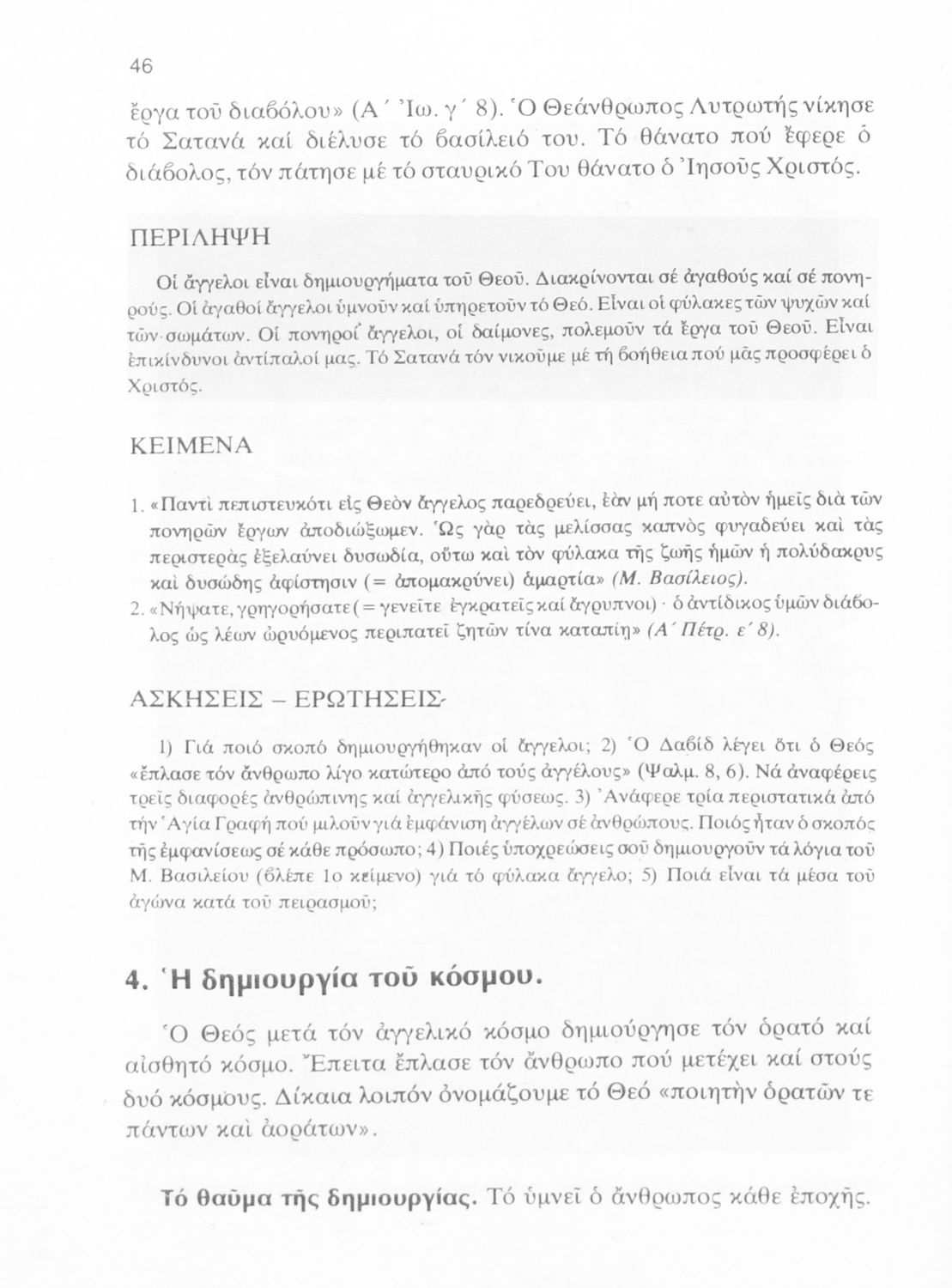 Σχολικό εγχειρίδιο Θρησκευτικών Γ΄ Γυμνασίου που περιλαμβάνει θέματα όπως η συμβολική διάσταση των Αγγέλων στη χριστιανική παράδοση, η ζωή και διδασκαλία του Ιησού Χριστού, η σημασία της Δευτέρας Παρουσίας και