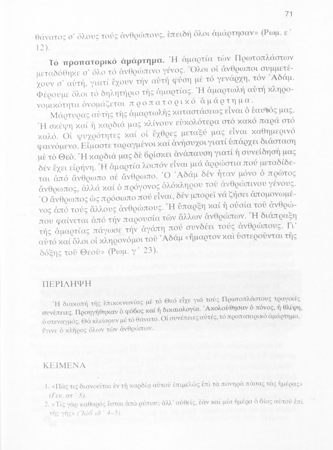Σχολικό εγχειρίδιο Θρησκευτικών για τους μαθητές της Γ΄ και Ε' Γυμνασίου που αναλύει την έννοια της κατήχησης στις διάφορες θρησκείες με έμφαση στο ορθόδοξο χριστιανικό δόγμα, το οποίο εξετάσει από δογματική ...