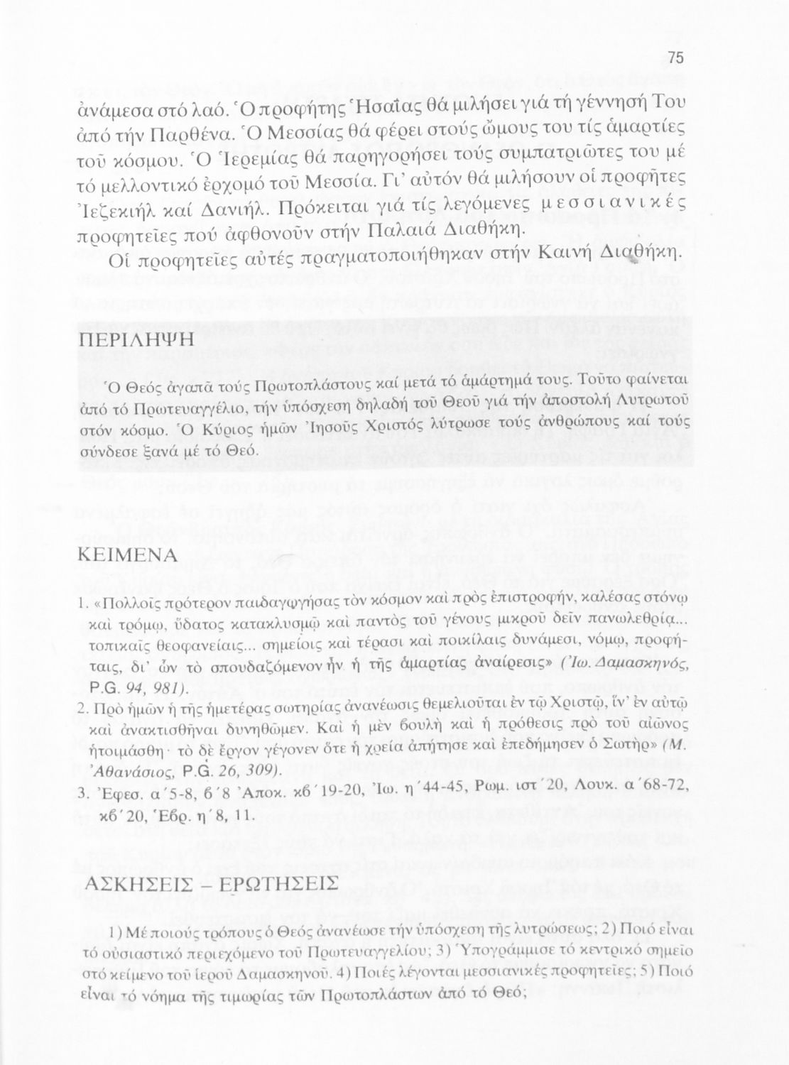 Σχολικό εγχειρίδιο Θρησκευτικών Γ΄ Γυμνασίου που περιλαμβάνει θέματα όπως η συμβολική διάσταση των Αγγέλων στη χριστιανική παράδοση, η ζωή και διδασκαλία του Ιησού Χριστού, η σημασία της Δευτέρας Παρουσίας και