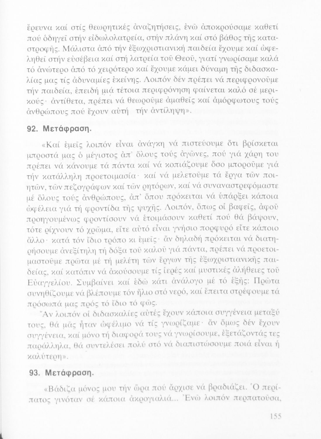 Σχολικό εγχειρίδιο Θρησκευτικών Α΄, Β΄ και Γ΄ Λυκείου που, μέσα από τα κείμενα των Πατέρων της Εκκλησίας, πραγματεύεται ζητήματα αρετής, ηθικής αμαρτίας, λύτρωσης, δικαιοσύνης και αγάπης. Επίσης αναφέρεται στις σχέσεις των ανθρώπων και στις σχέσεις τους με το Θεό.