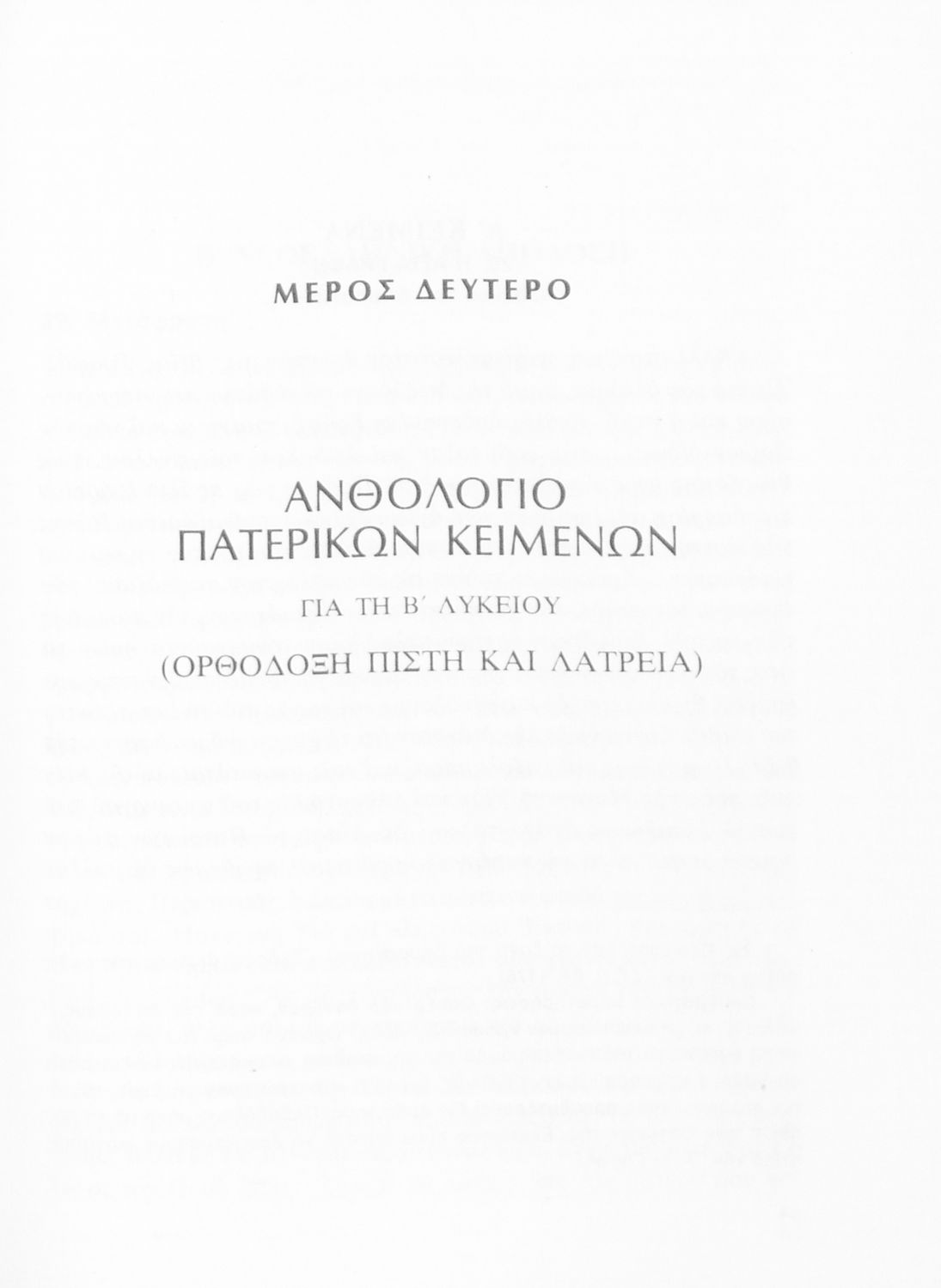 Τίτλος: Ανθολόγιο Πατερικών Κειμένων για τις τρεις τάξεις του Λυκείου