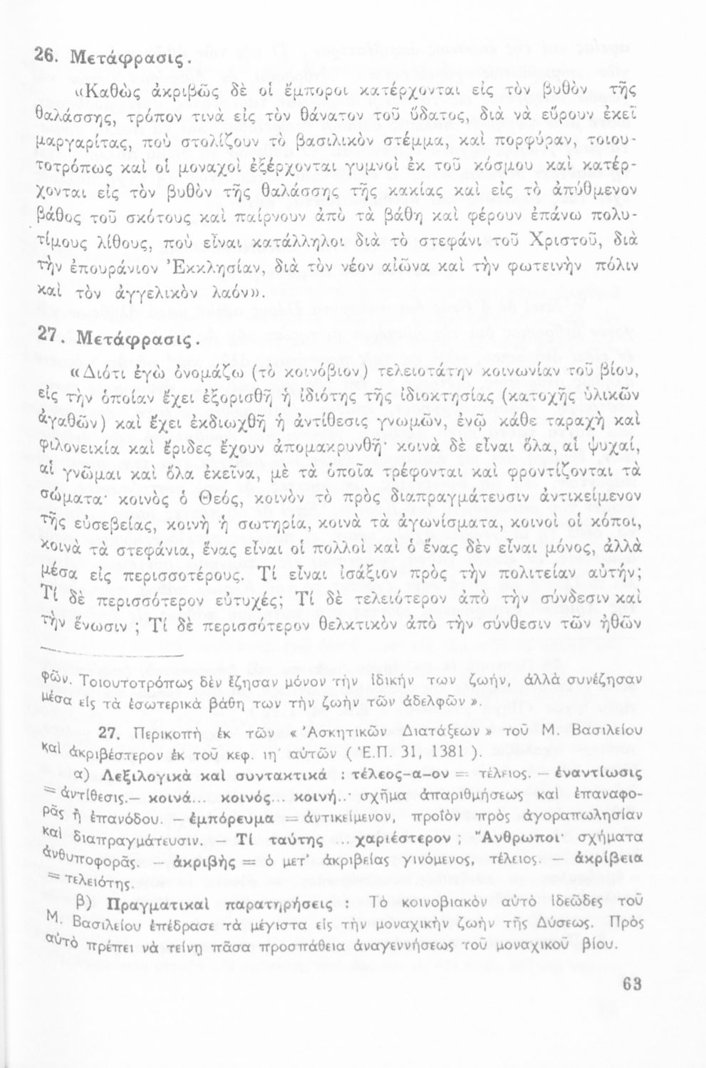 Σχολικό εγχειρίδιο Αρχαίων Ελληνικών Γυμνασίου που περιέχει κείμενα και γραμματικές, συντακτικές παρατηρήσεις.
