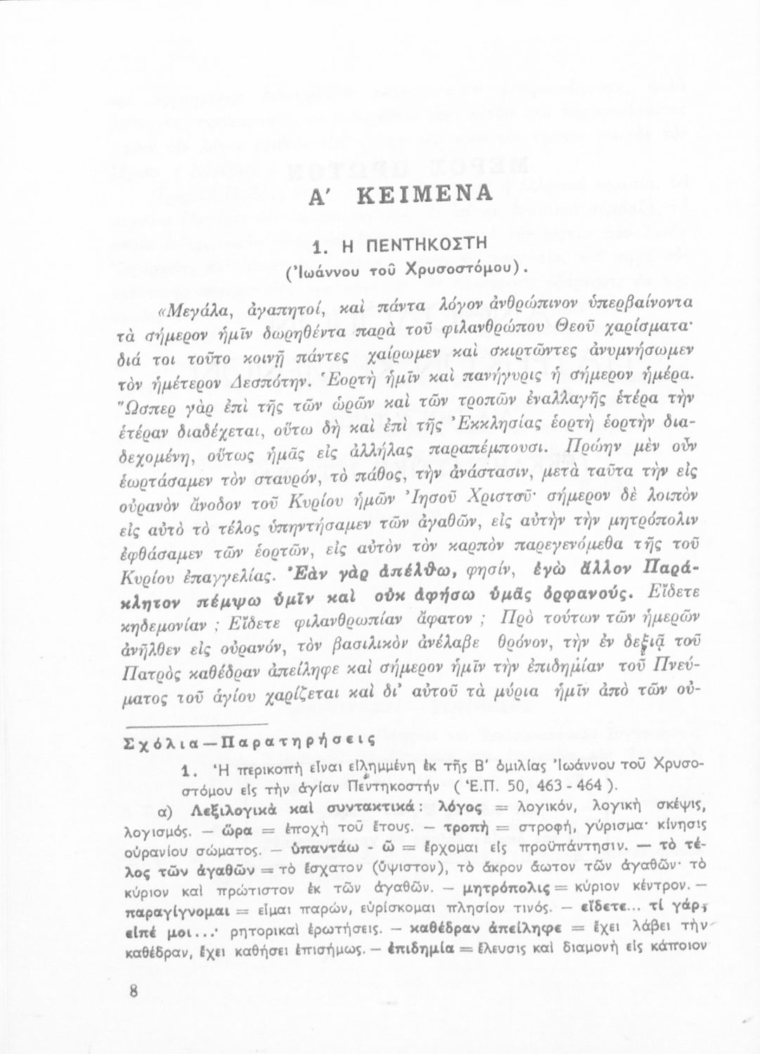Σχολικό εγχειρίδιο Αρχαίων Ελληνικών Γυμνασίου που περιέχει κείμενα και γραμματικές, συντακτικές παρατηρήσεις.