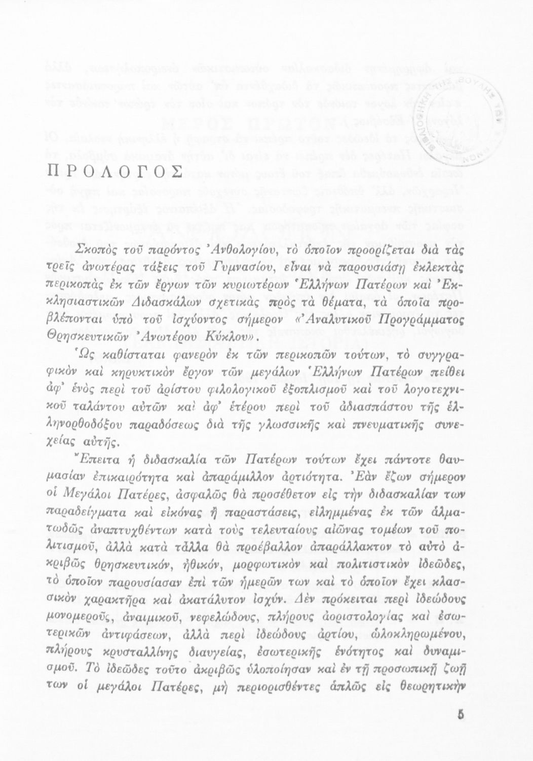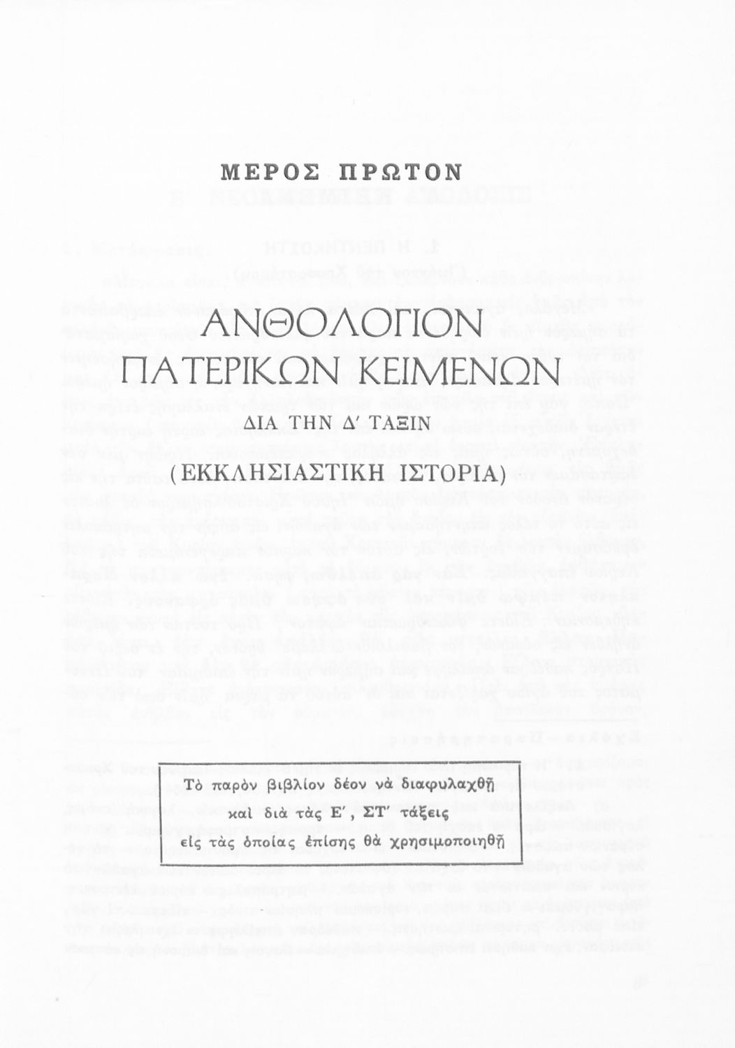Ανθολόγιο Πατερικών Κειμένων δια τας τρεις ανωτέρας τάξεις του Γυμνασίου