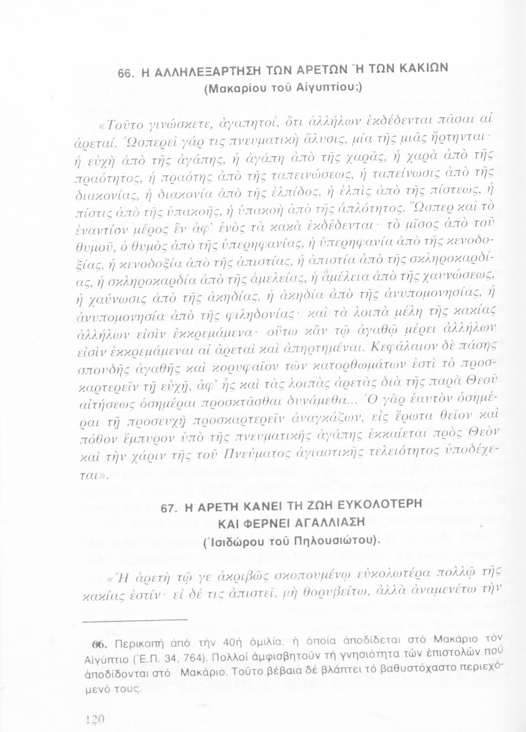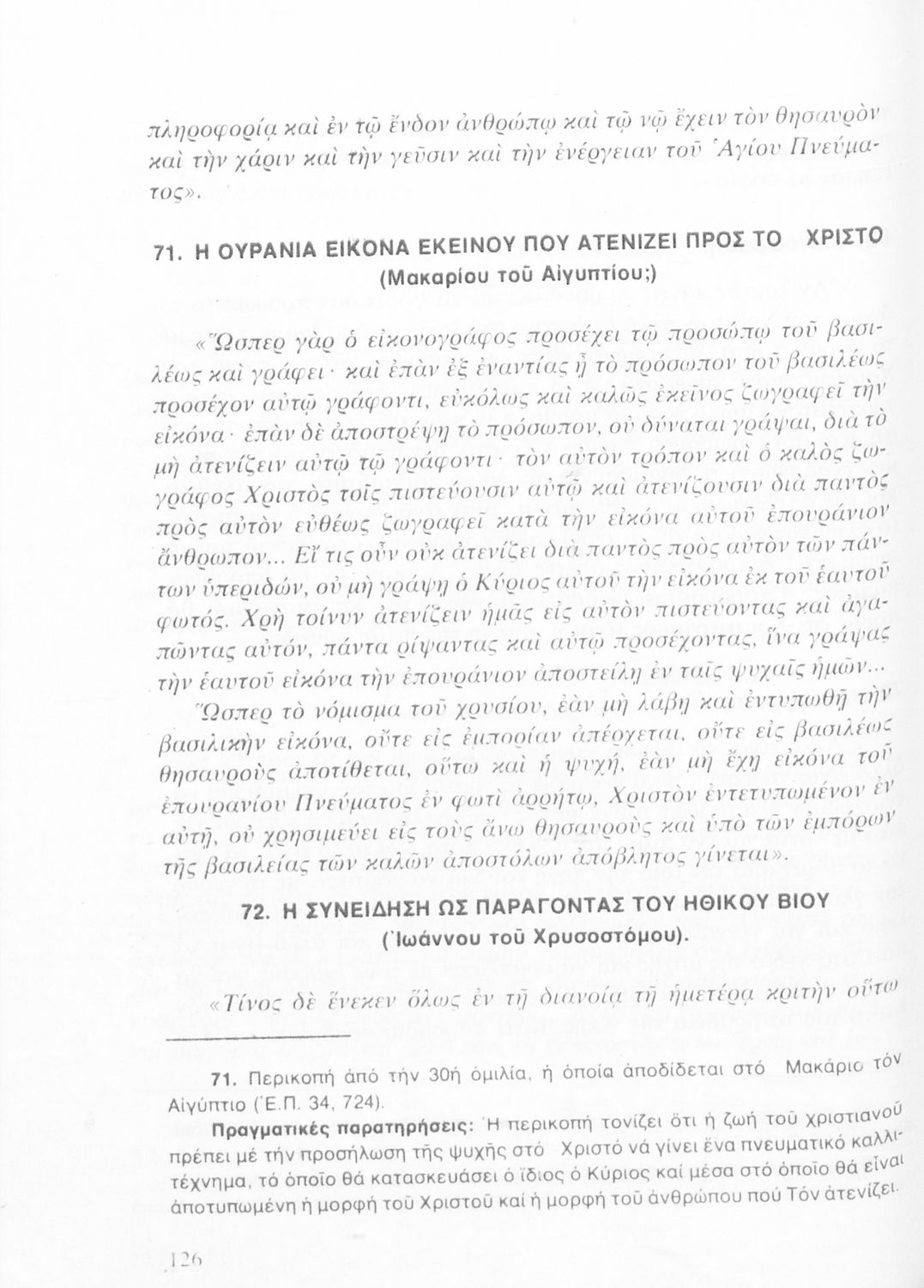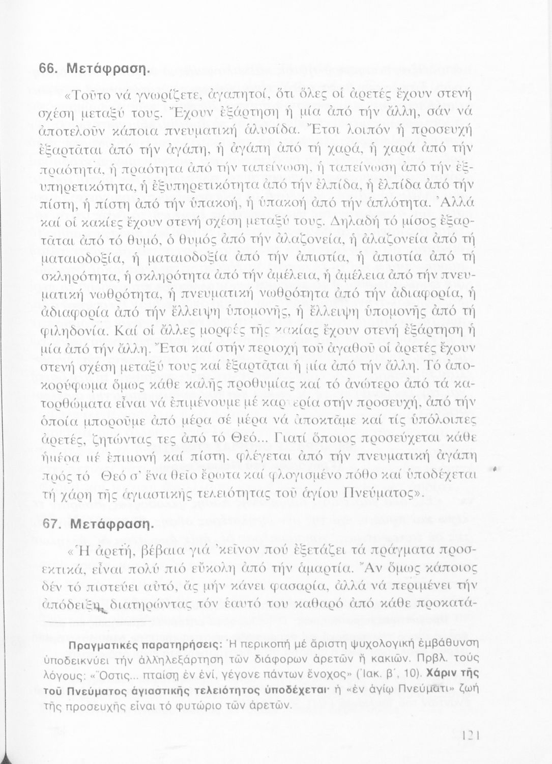 Σχολικό εγχειρίδιο Θρησκευτικών Α΄, Β΄ και Γ΄ Λυκείου που, μέσα από τα κείμενα των Πατέρων της Εκκλησίας, πραγματεύεται ζητήματα αρετής, ηθικής αμαρτίας, λύτρωσης, δικαιοσύνης και αγάπης. Επίσης αναφέρεται στις σχέσεις των ανθρώπων και στις σχέσεις τους με το Θεό.