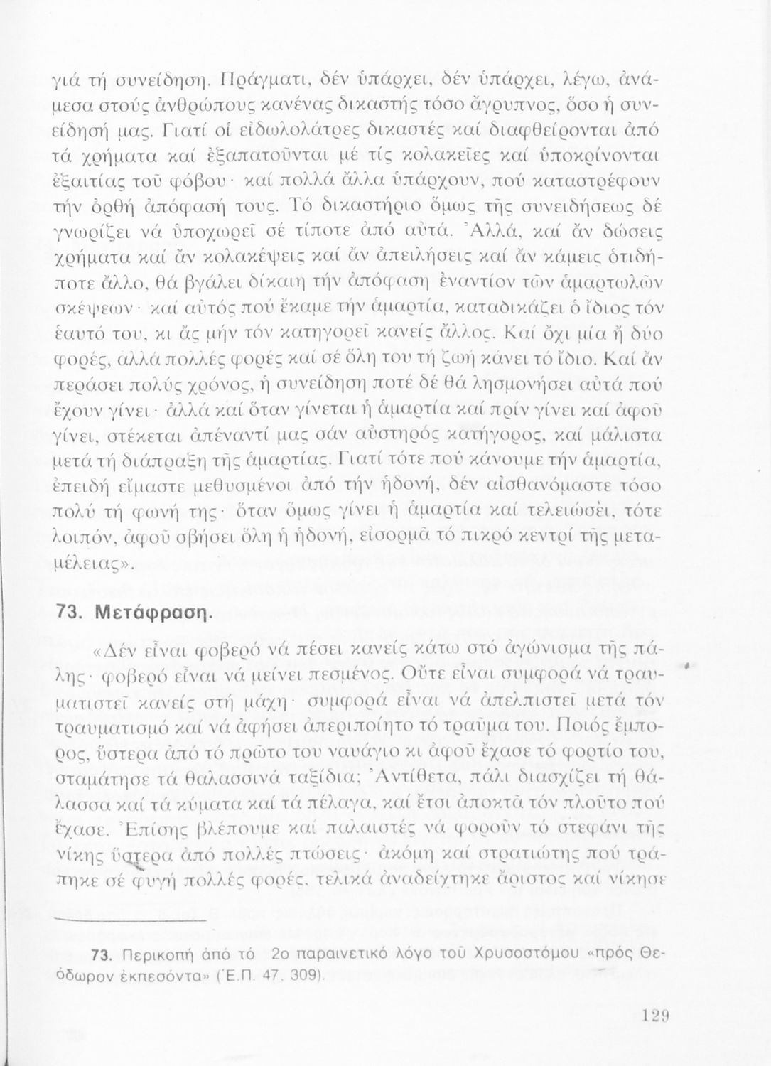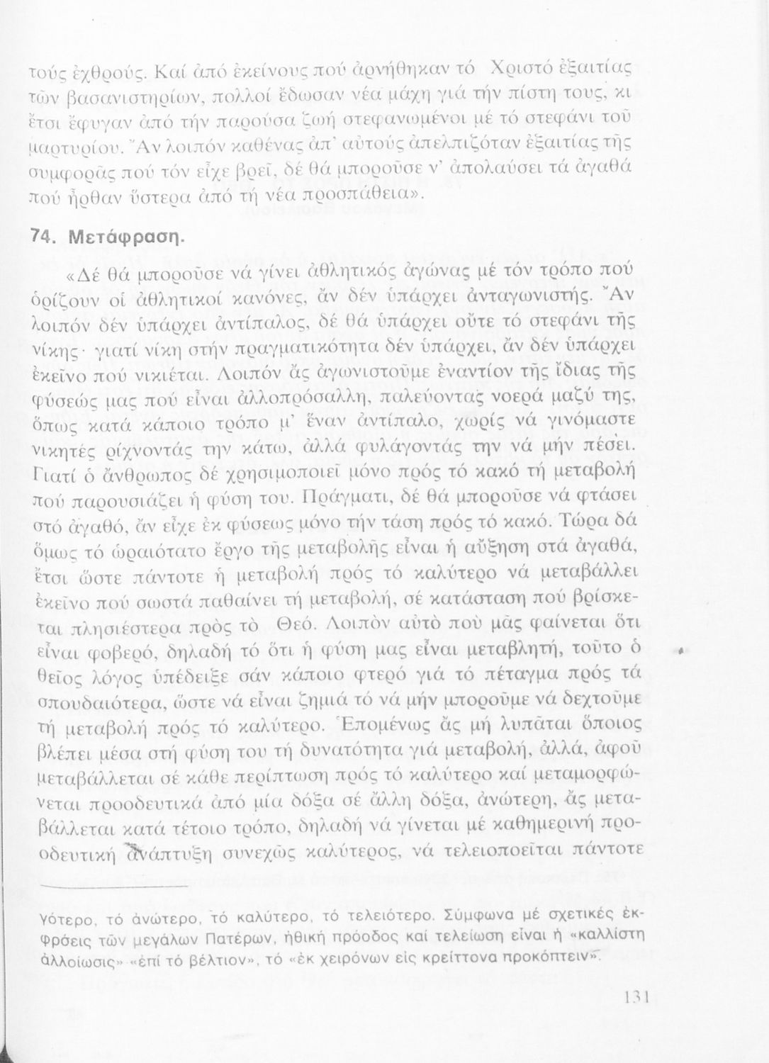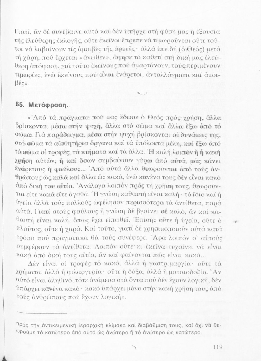 Σχολικό εγχειρίδιο Θρησκευτικών Α΄, Β΄ και Γ΄ Λυκείου που, μέσα από τα κείμενα των Πατέρων της Εκκλησίας, πραγματεύεται ζητήματα αρετής, ηθικής αμαρτίας, λύτρωσης, δικαιοσύνης και αγάπης. Επίσης αναφέρεται στις σχέσεις των ανθρώπων και στις σχέσεις τους με το Θεό.