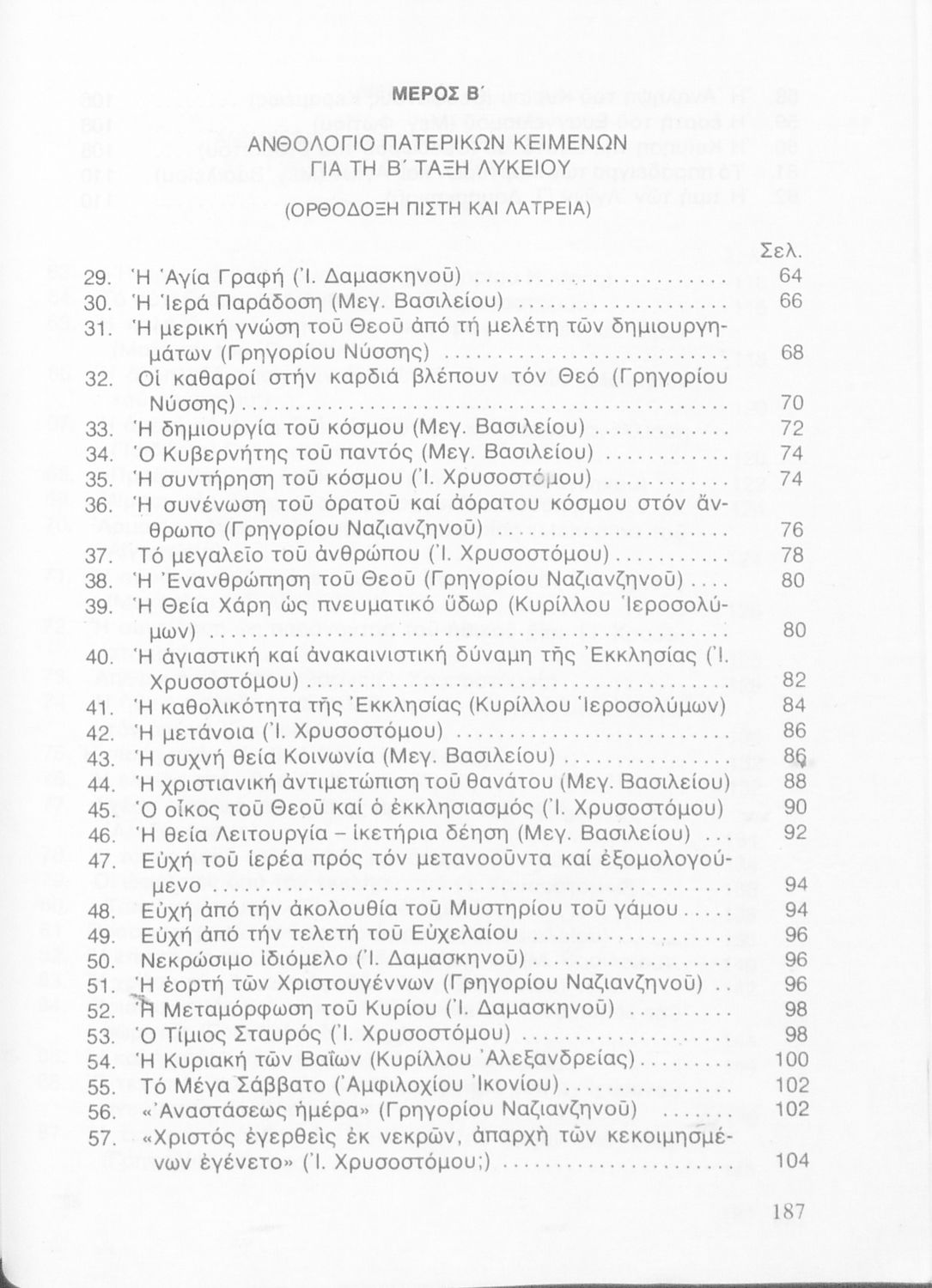 Ανθολόγιο Πατερικών Κειμένων για τις τρεις τάξεις του Λυκείου