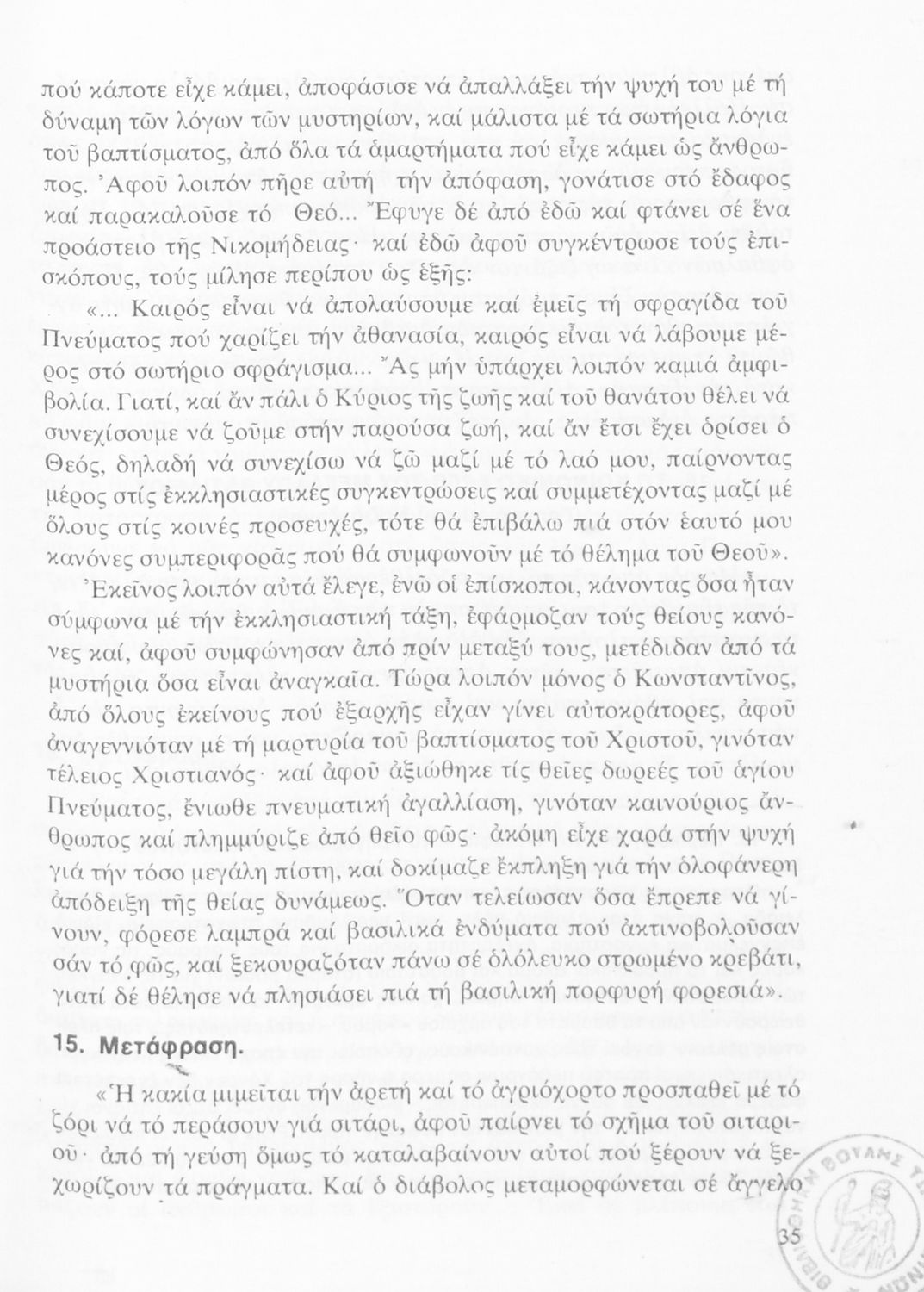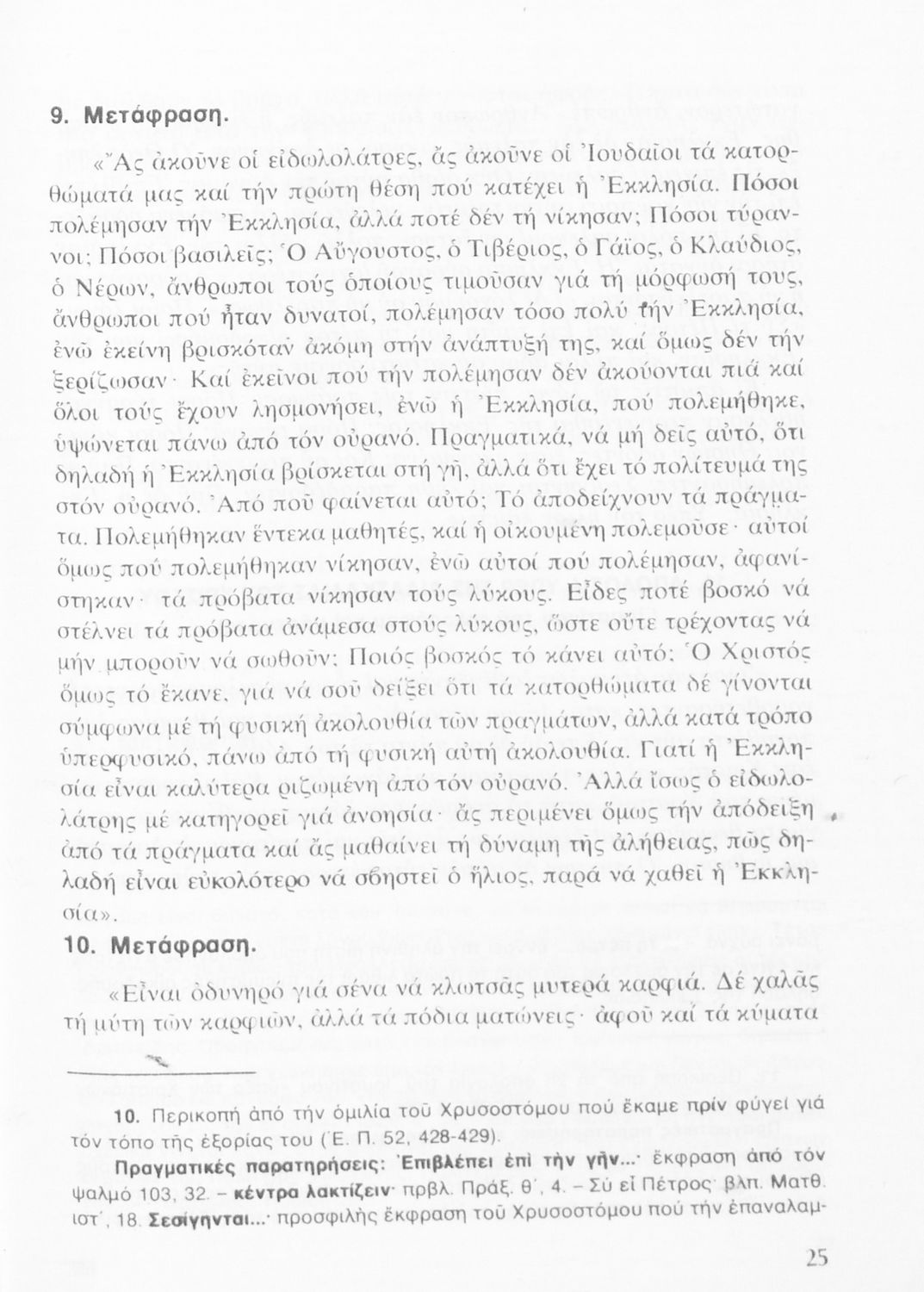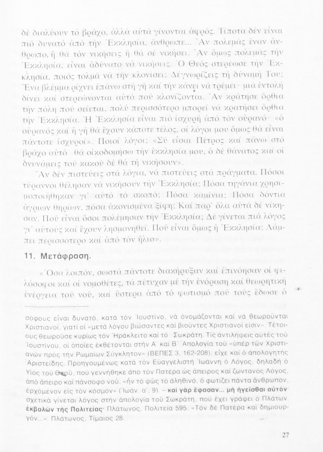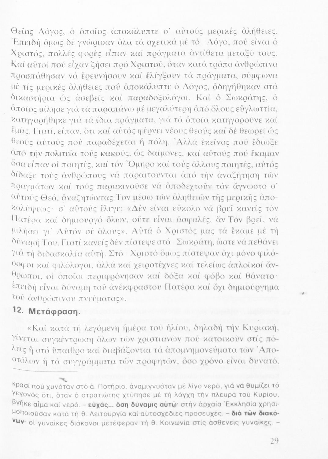 Σχολικό εγχειρίδιο Θρησκευτικών Α΄, Β΄ και Γ΄ Λυκείου που, μέσα από τα κείμενα των Πατέρων της Εκκλησίας, πραγματεύεται ζητήματα αρετής, ηθικής αμαρτίας, λύτρωσης, δικαιοσύνης και αγάπης. Επίσης αναφέρεται στις σχέσεις των ανθρώπων και στις σχέσεις τους με το Θεό.