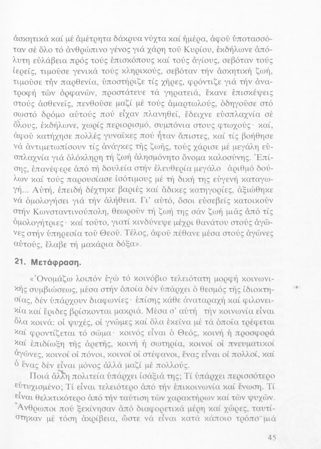 Σχολικό εγχειρίδιο Θρησκευτικών Α΄, Β΄ και Γ΄ Λυκείου που, μέσα από τα κείμενα των Πατέρων της Εκκλησίας, πραγματεύεται ζητήματα αρετής, ηθικής αμαρτίας, λύτρωσης, δικαιοσύνης και αγάπης. Επίσης αναφέρεται στις σχέσεις των ανθρώπων και στις σχέσεις τους με το Θεό.