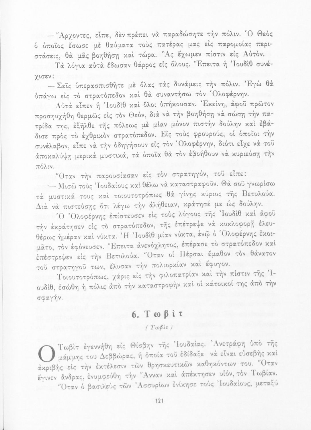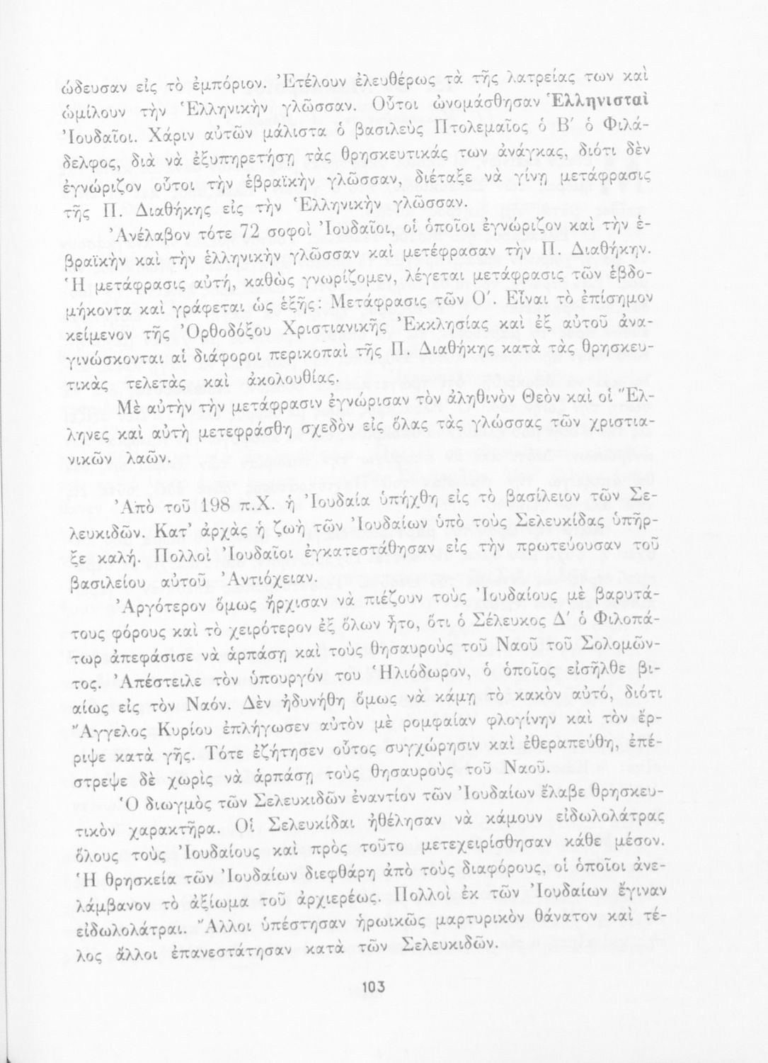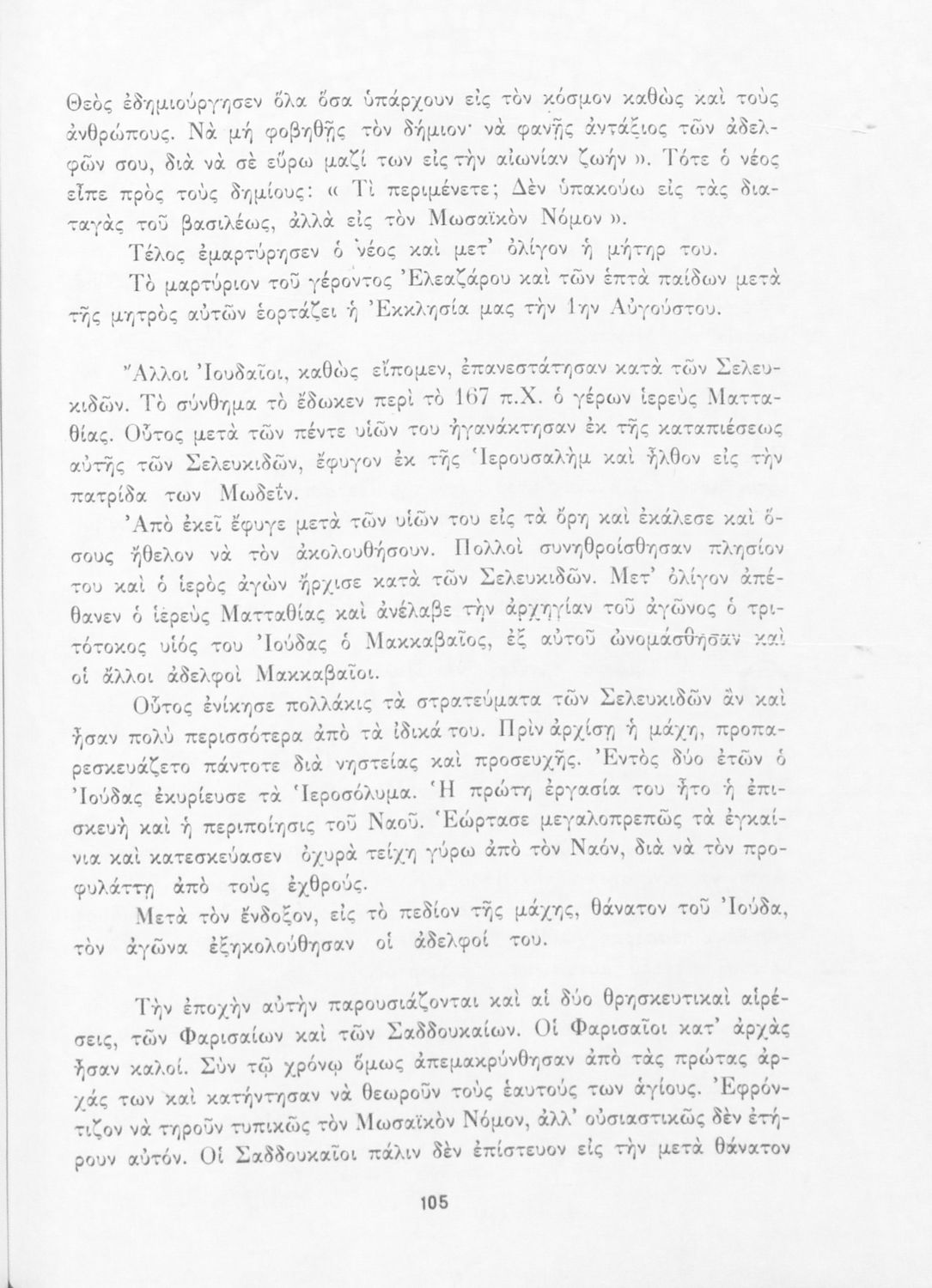 Σχολικό εγχειρίδιο Θρησκευτικών Α΄ Γυμνασίου που περιλαμβάνει εισαγωγή στην Αγία Γραφή, και συνιστά μία εξιστόρηση της Παλαιάς Διαθήκης από τη δημιουργία του κόσμου ως τους Προφήτες. Φέρει το σύμβολο της δικτατορίας.