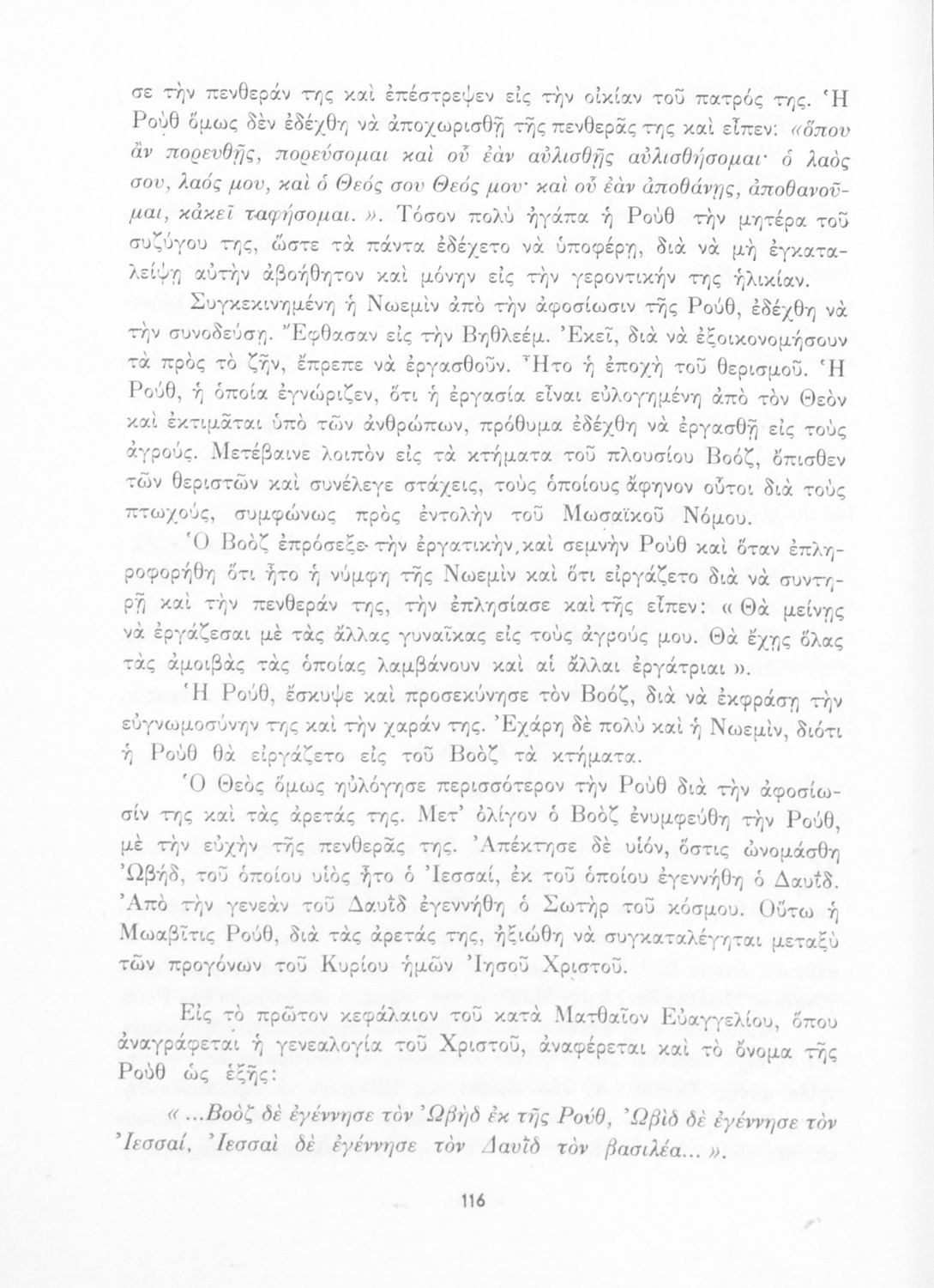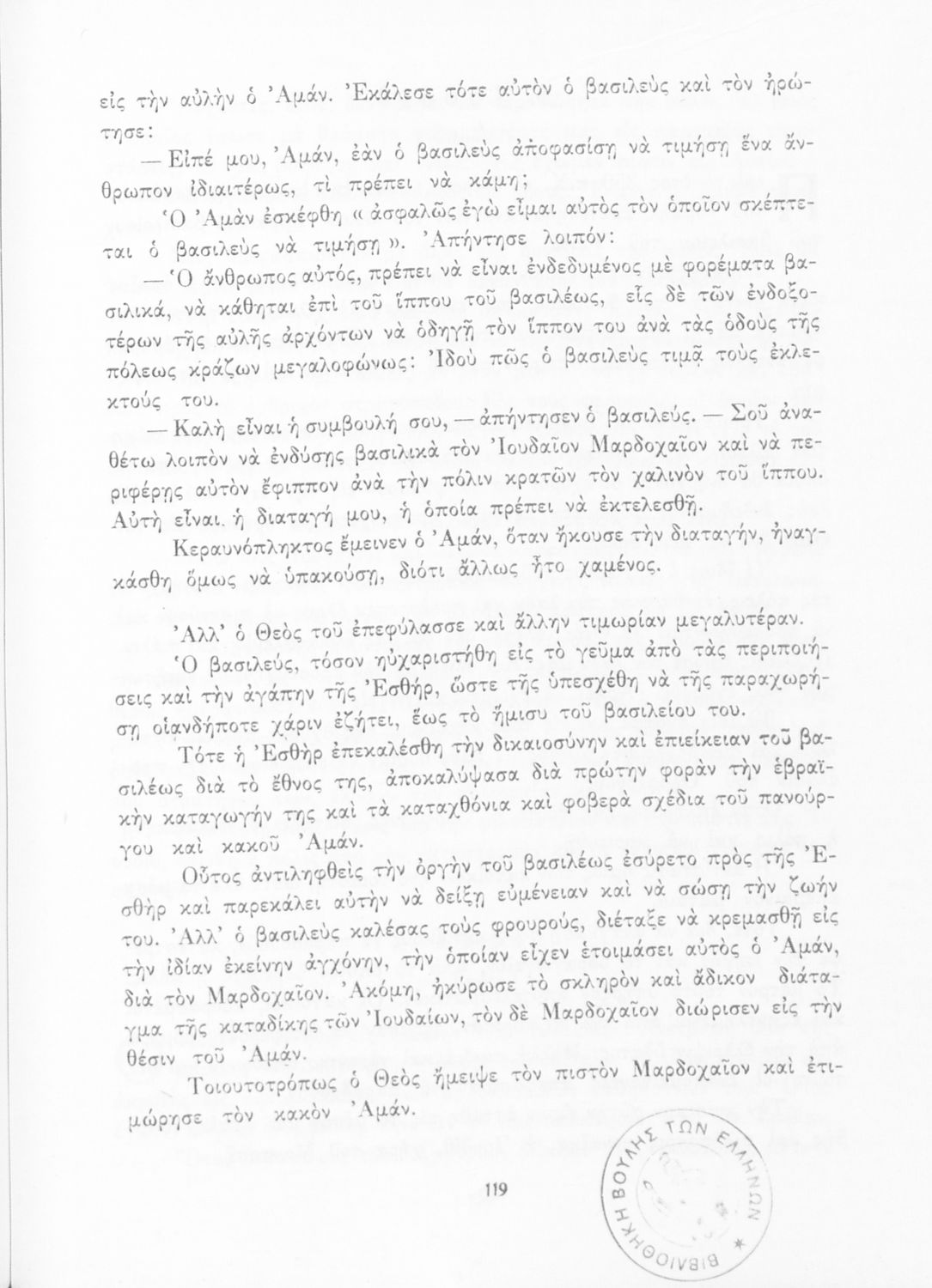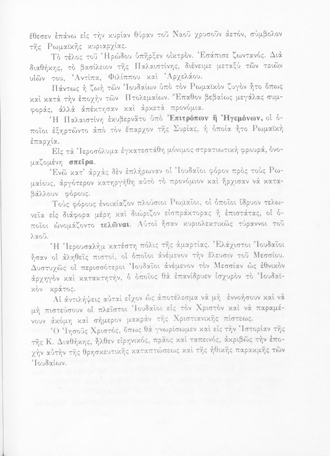 Βαθμίδα εκπαίδευσης: Δευτεροβάθμια Τάξη: Α' Γυμνασίου Μάθημα: Θρησκευτικά Γλώσσα: Απλή καθαρεύουσα Παρουσίαση περιεχομένου: Σχολικό εγχειρίδιο Θρησκευτικών Α΄ Γυμνασίου που περιλαμβάνει εισαγωγή στην Αγία Γραφή, και συνιστά μία εξιστόρηση της Παλαιάς Διαθήκης από τη δημιουργία του κόσμου ως τους Προφήτες. Φέρει το σύμβολο της δικτατορίας. |