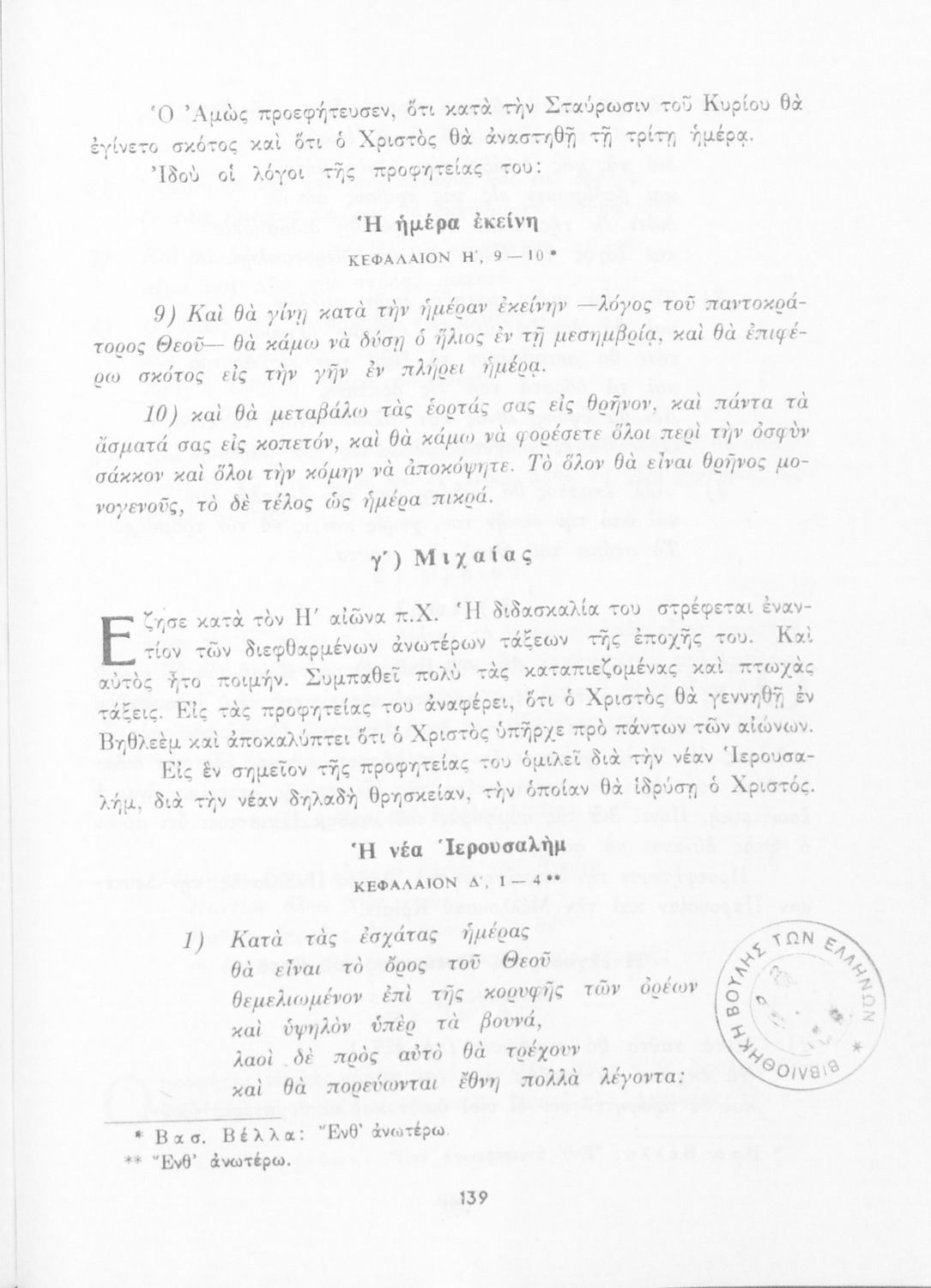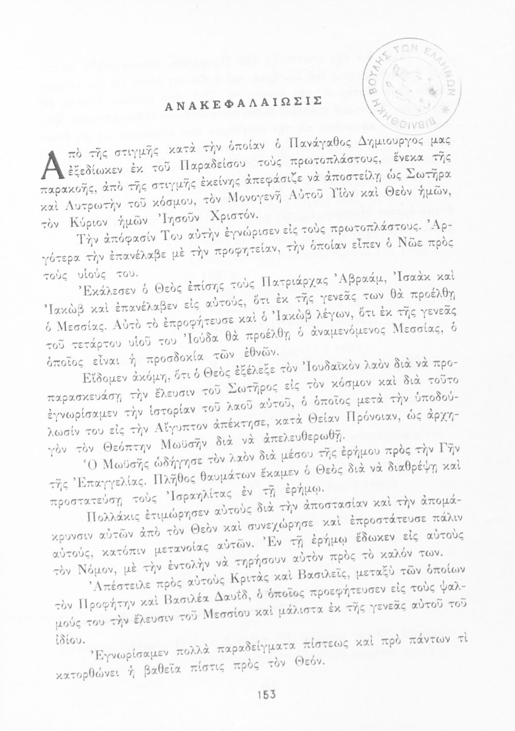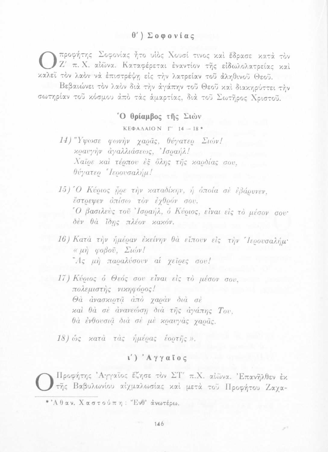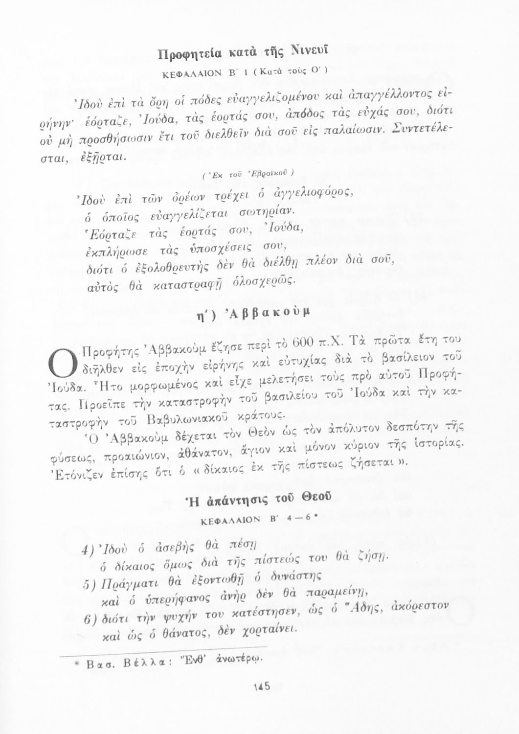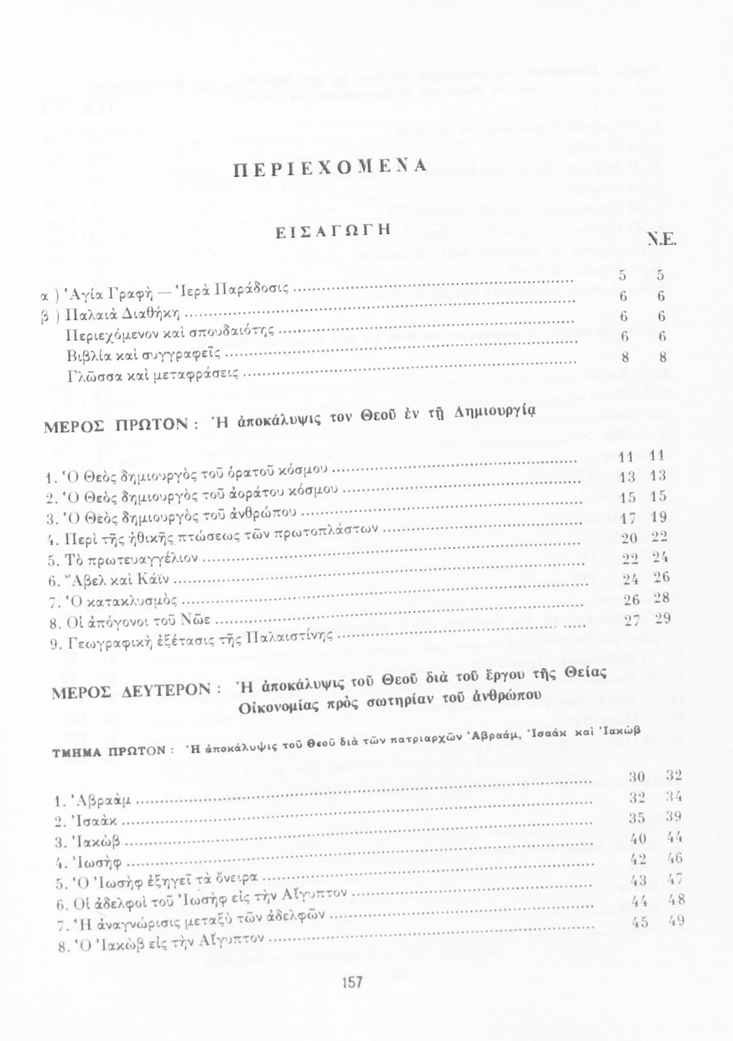 Σχολικό εγχειρίδιο Θρησκευτικών Α΄ Γυμνασίου που περιλαμβάνει εισαγωγή στην Αγία Γραφή, και συνιστά μία εξιστόρηση της Παλαιάς Διαθήκης από τη δημιουργία του κόσμου ως τους Προφήτες. Φέρει το σύμβολο της δικτατορίας.