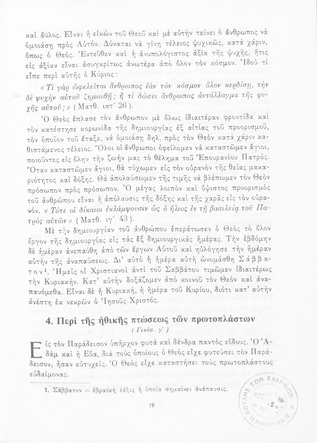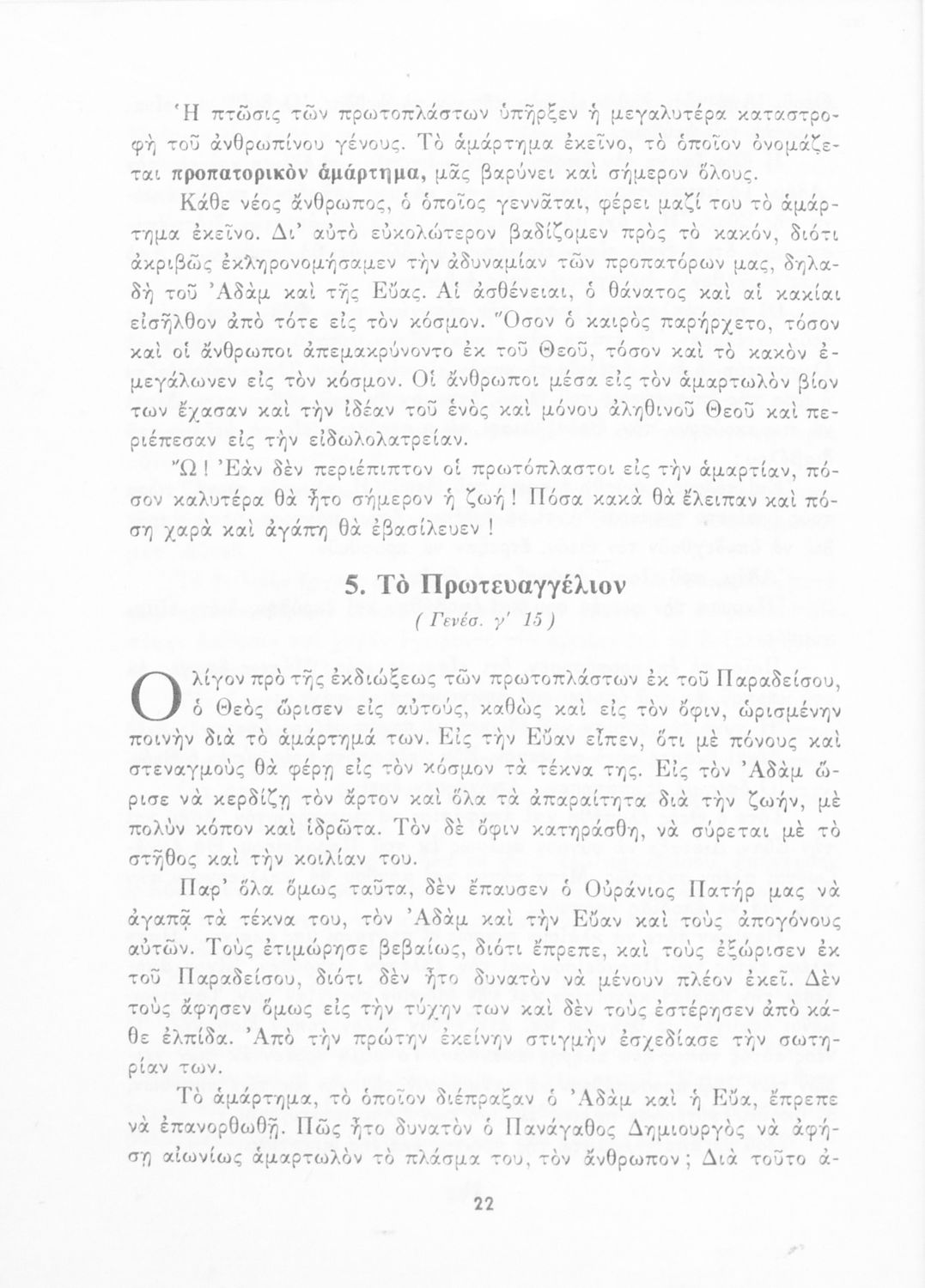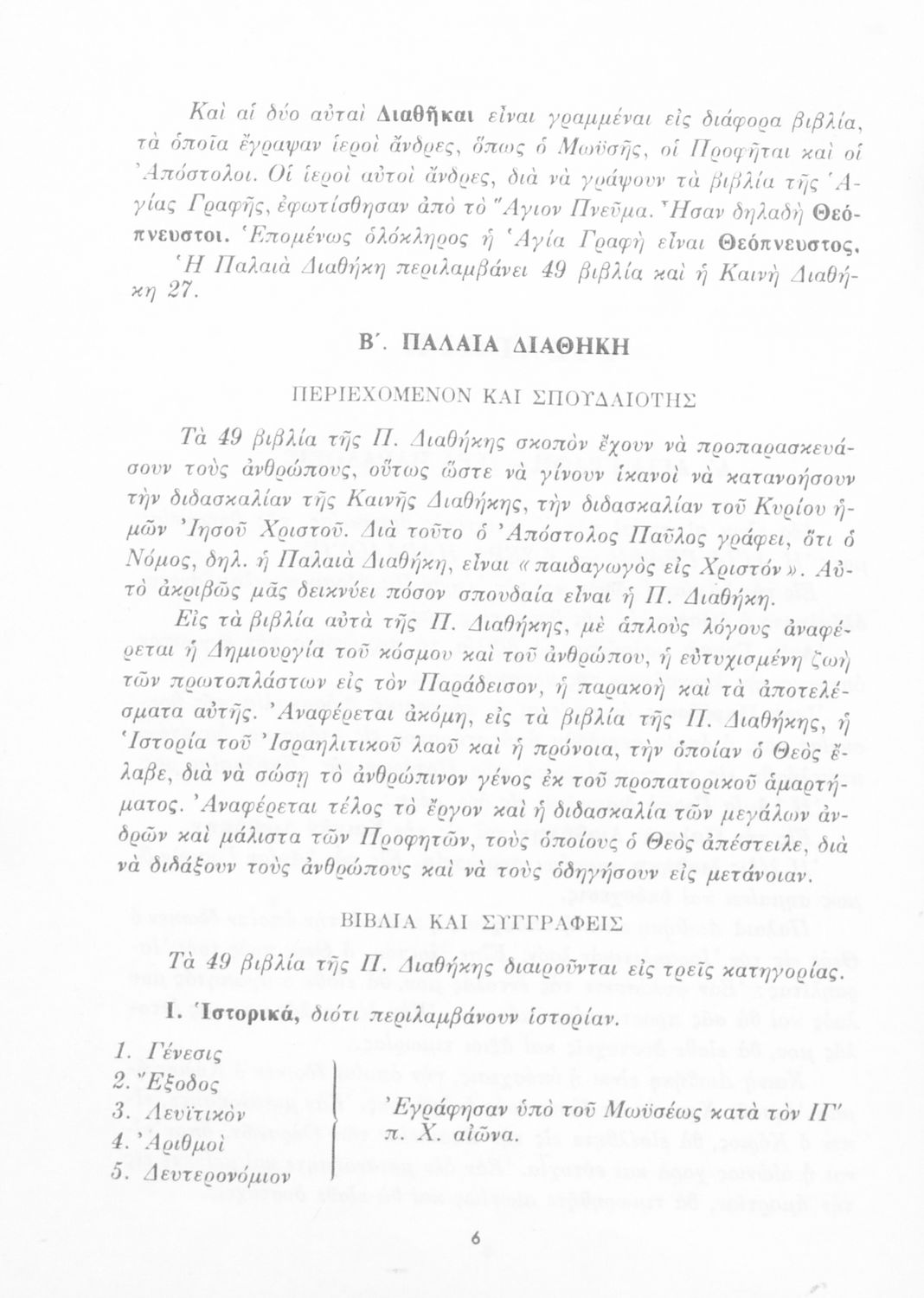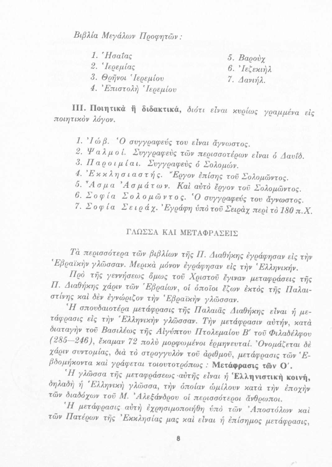 Βαθμίδα εκπαίδευσης: Δευτεροβάθμια Τάξη: Α' Γυμνασίου Μάθημα: Θρησκευτικά Γλώσσα: Απλή καθαρεύουσα Παρουσίαση περιεχομένου: Σχολικό εγχειρίδιο Θρησκευτικών Α΄ Γυμνασίου που περιλαμβάνει εισαγωγή στην Αγία Γραφή, και συνιστά μία εξιστόρηση της Παλαιάς Διαθήκης από τη δημιουργία του κόσμου ως τους Προφήτες. Φέρει το σύμβολο της δικτατορίας. |
