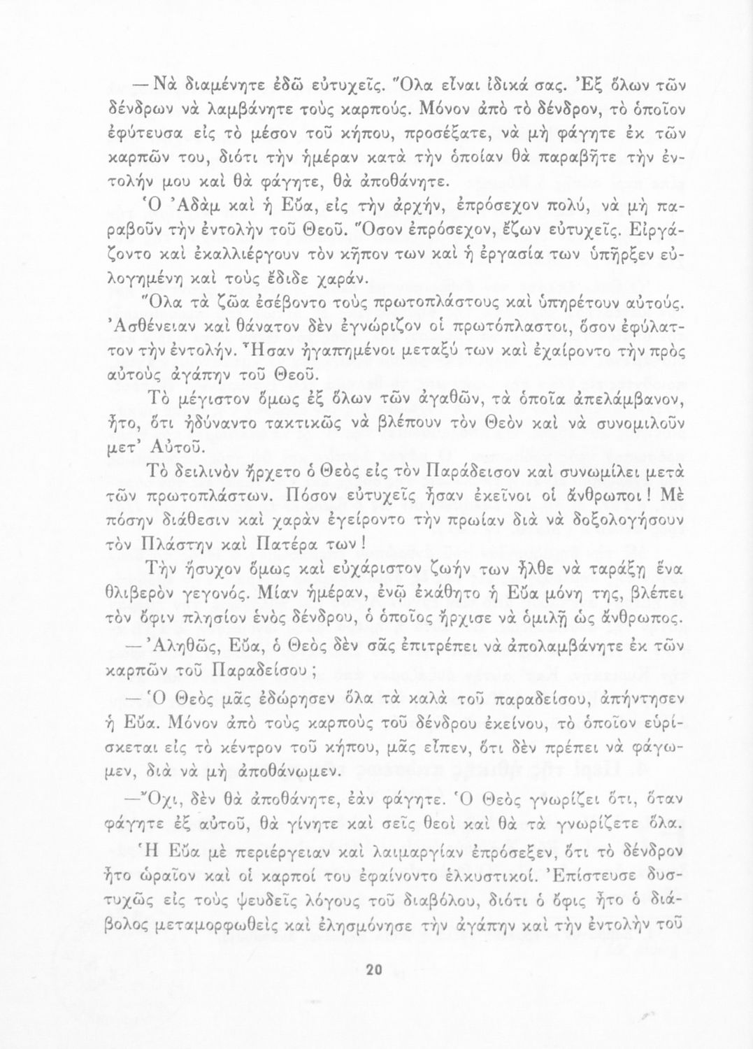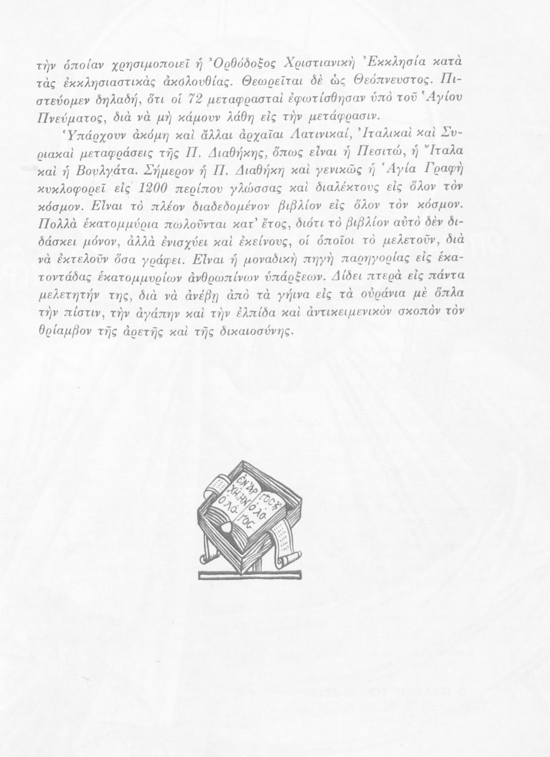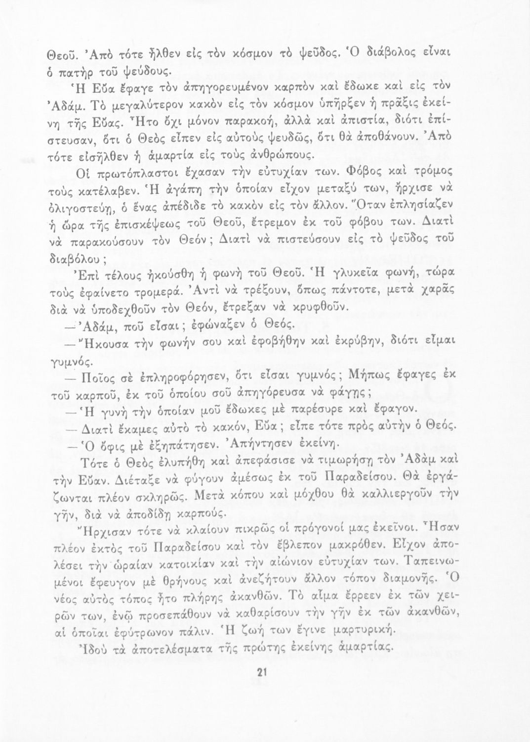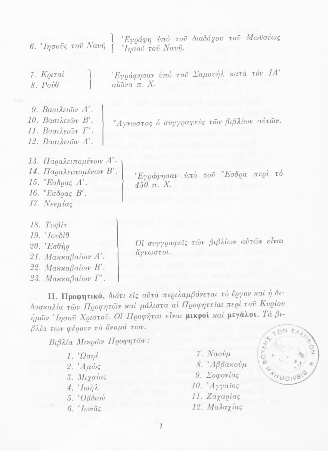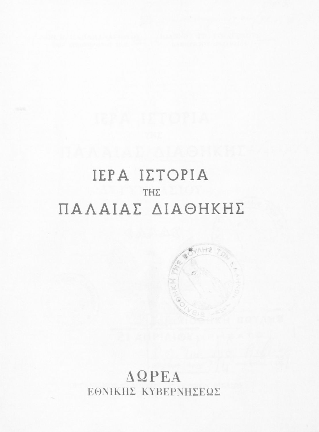 Σχολικό εγχειρίδιο Θρησκευτικών Α΄ Γυμνασίου που περιλαμβάνει εισαγωγή στην Αγία Γραφή, και συνιστά μία εξιστόρηση της Παλαιάς Διαθήκης από τη δημιουργία του κόσμου ως τους Προφήτες. Φέρει το σύμβολο της δικτατορίας.