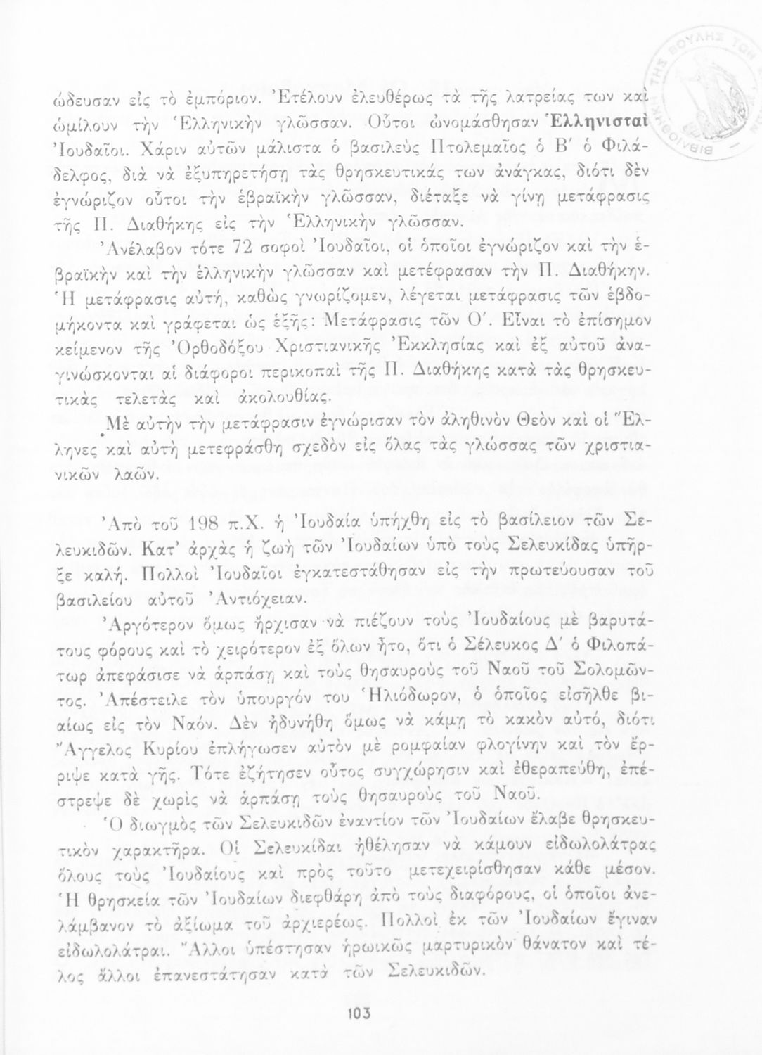 Παρουσίαση περιεχομένου: Σχολικό εγχειρίδιο Θρησκευτικών Α΄ Γυμνασίου που περιλαμβάνει εισαγωγή στην Αγία Γραφή, και συνιστά μία εξιστόρηση της Παλαιάς Διαθήκης από τη δημιουργία του κόσμου ως τους Προφήτες. Φέρει το σύμβολο της δικτατορίας.