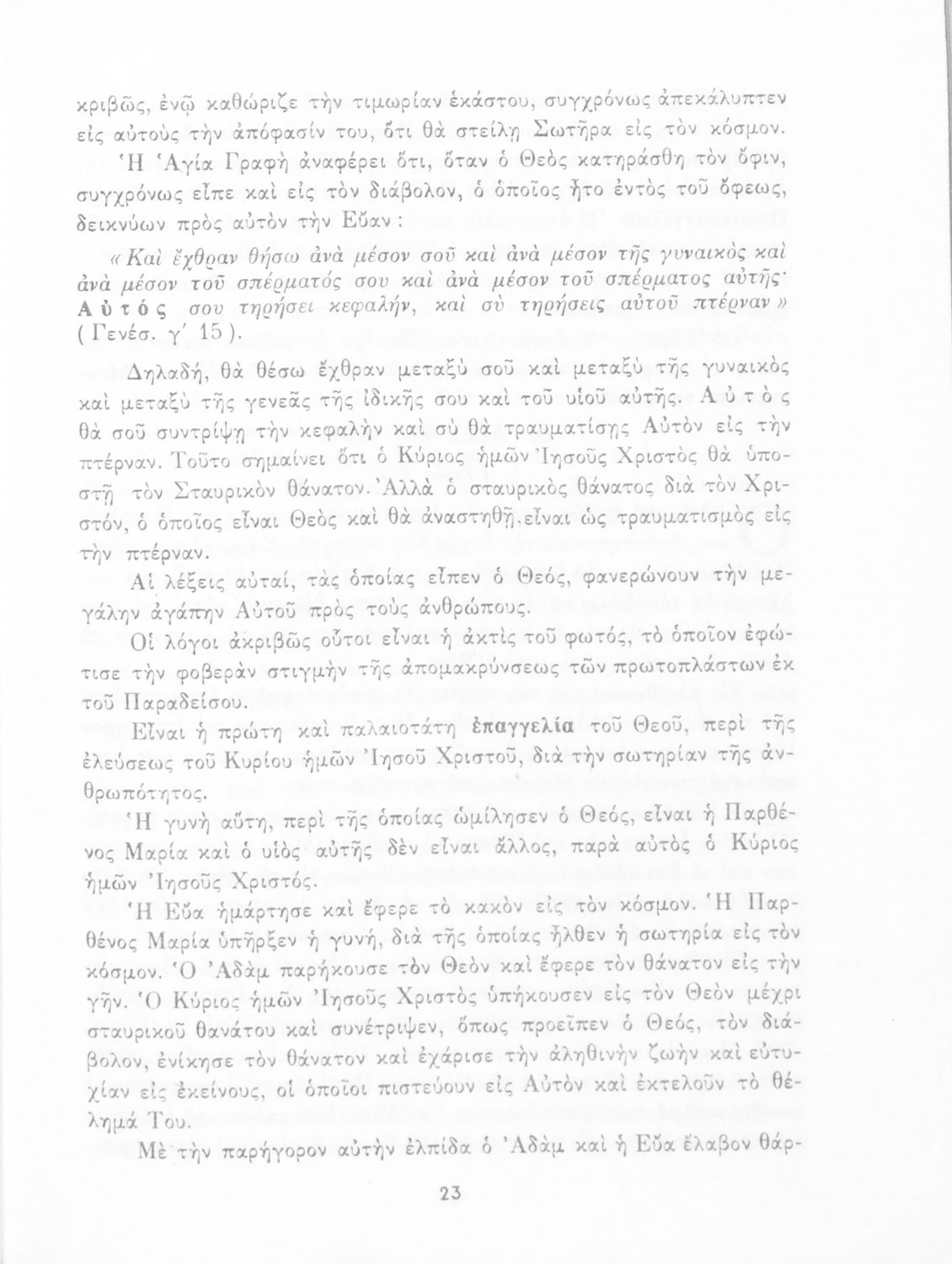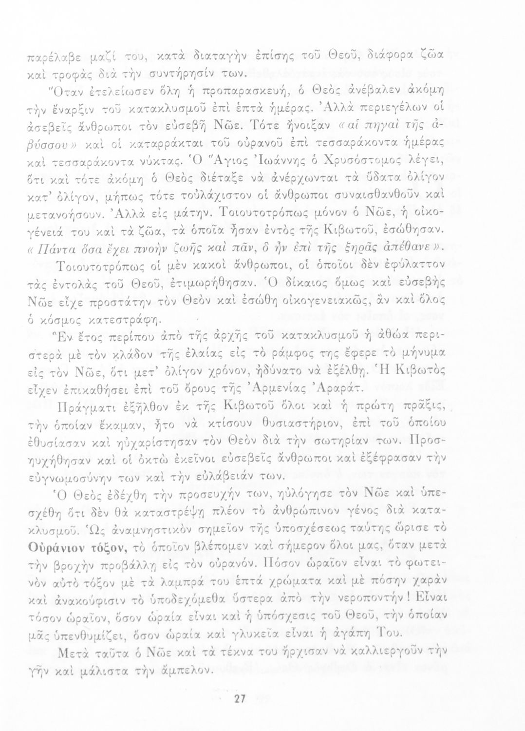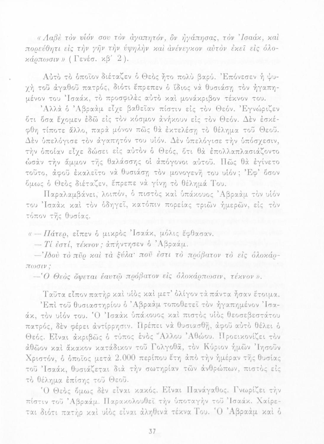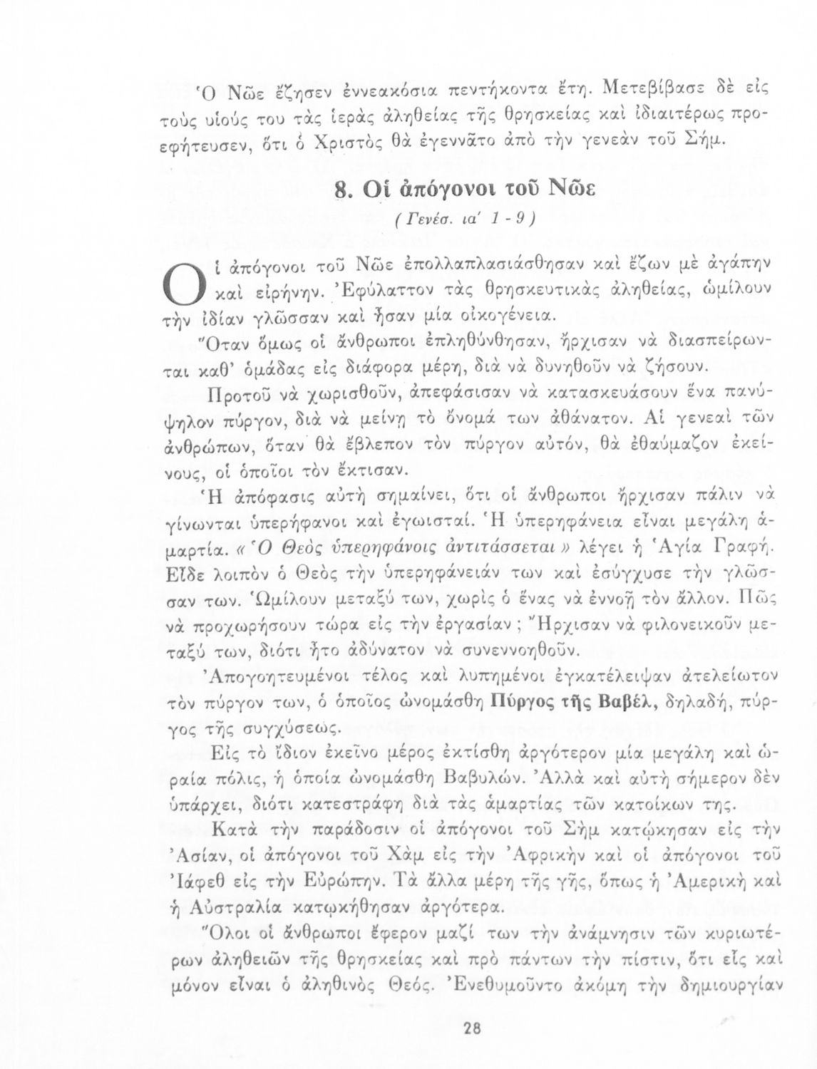 Παρουσίαση περιεχομένου: Σχολικό εγχειρίδιο Θρησκευτικών Α΄ Γυμνασίου που περιλαμβάνει εισαγωγή στην Αγία Γραφή, και συνιστά μία εξιστόρηση της Παλαιάς Διαθήκης από τη δημιουργία του κόσμου ως τους Προφήτες. Φέρει το σύμβολο της δικτατορίας.