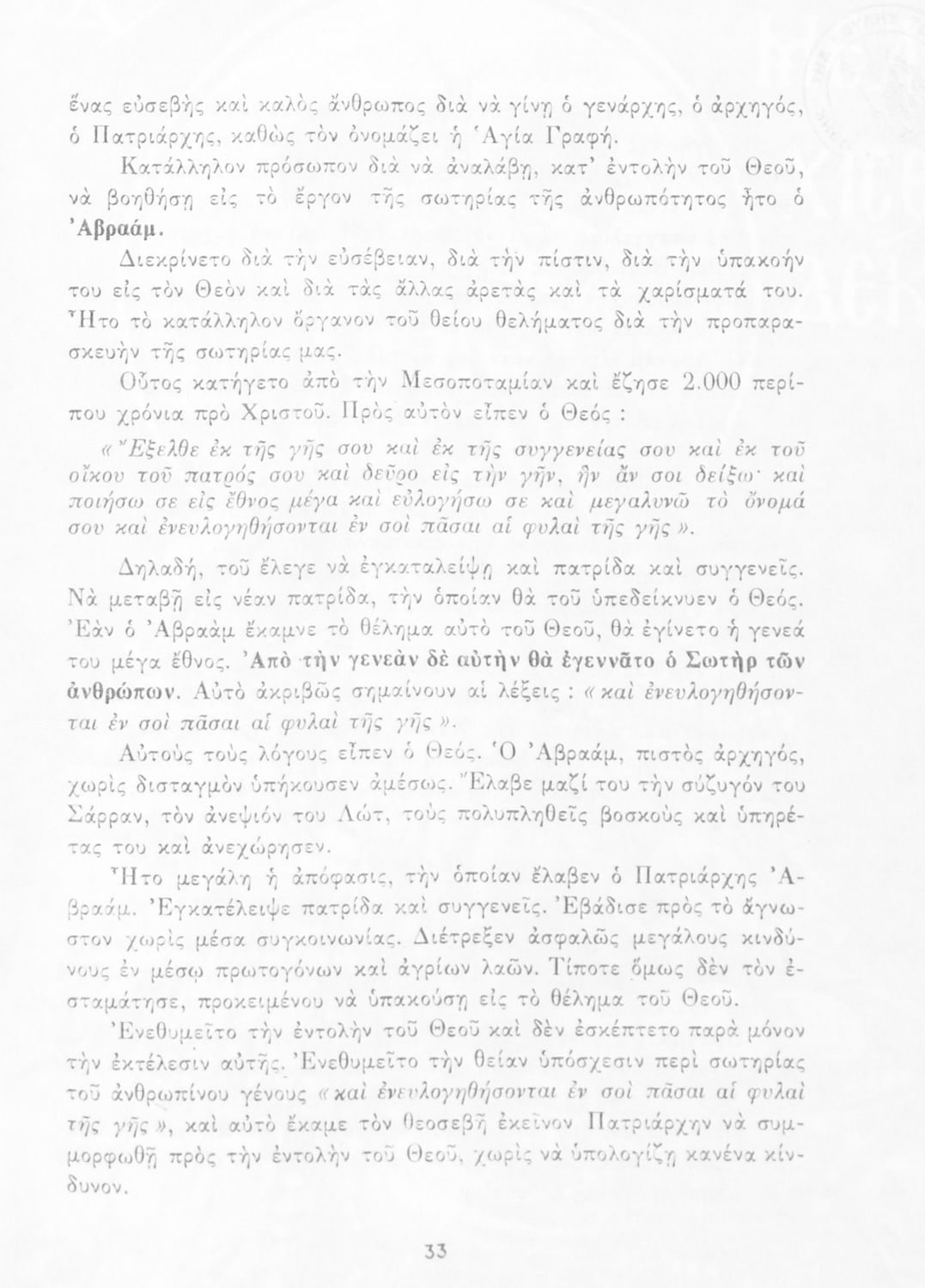 Σχολικό εγχειρίδιο Θρησκευτικών Α΄ Γυμνασίου που περιλαμβάνει εισαγωγή στην Αγία Γραφή, και συνιστά μία εξιστόρηση της Παλαιάς Διαθήκης από τη δημιουργία του κόσμου ως τους Προφήτες. Φέρει το σύμβολο της δικτατορίας.