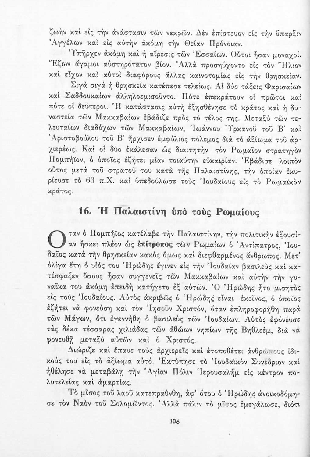 Σχολικό εγχειρίδιο Θρησκευτικών που συνιστά μία εξιστόρηση της Παλαιάς Διαθήκης από τη δημιουργία του κόσμου ως την υποταγή των Εβραίων στους Ρωμαίους. Περιέχει και στοιχεία γεωγραφίας της Παλαιστίνης.