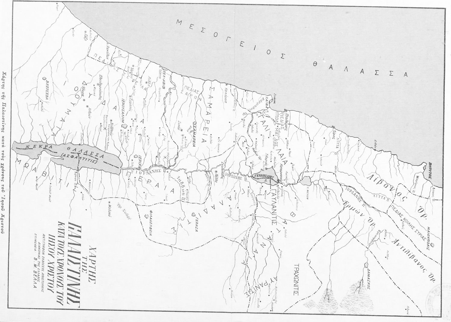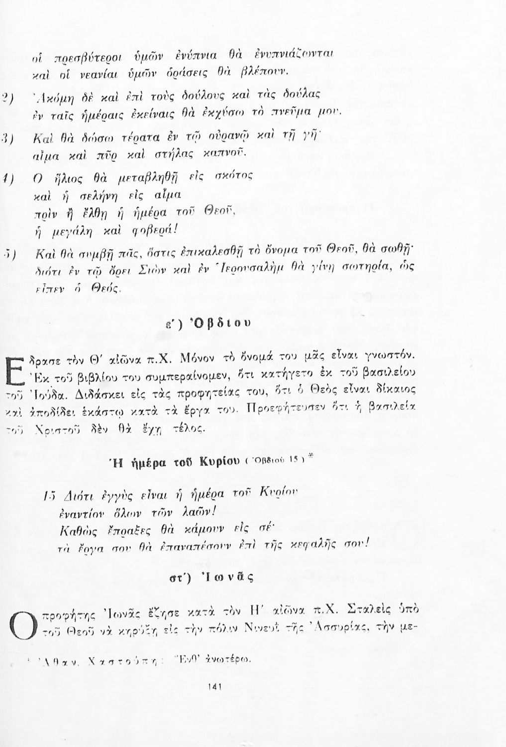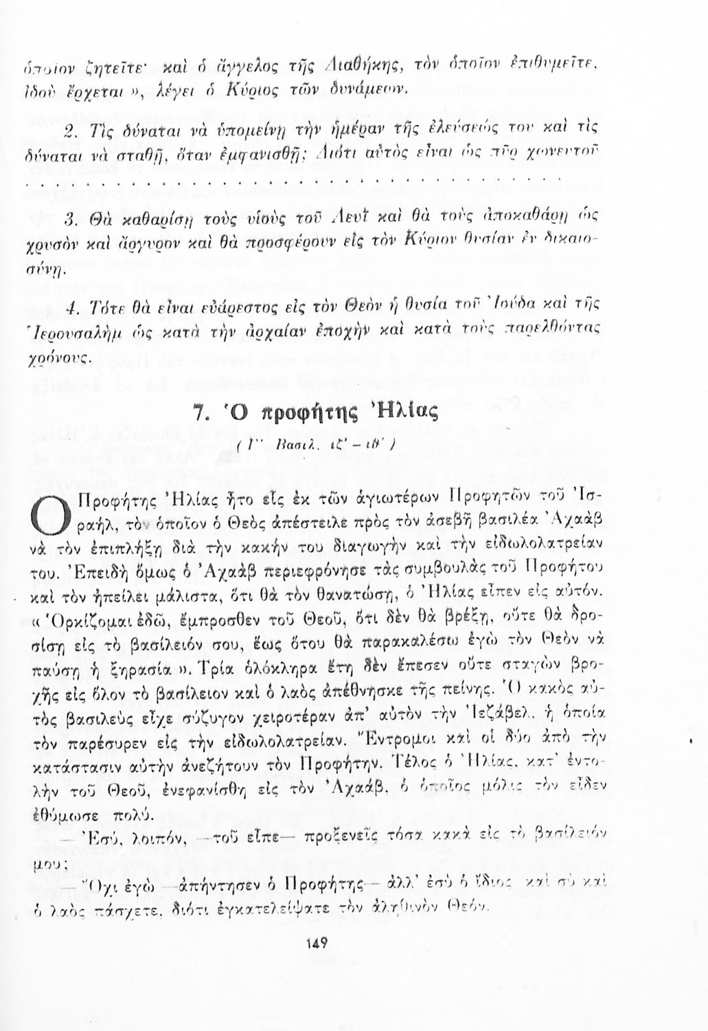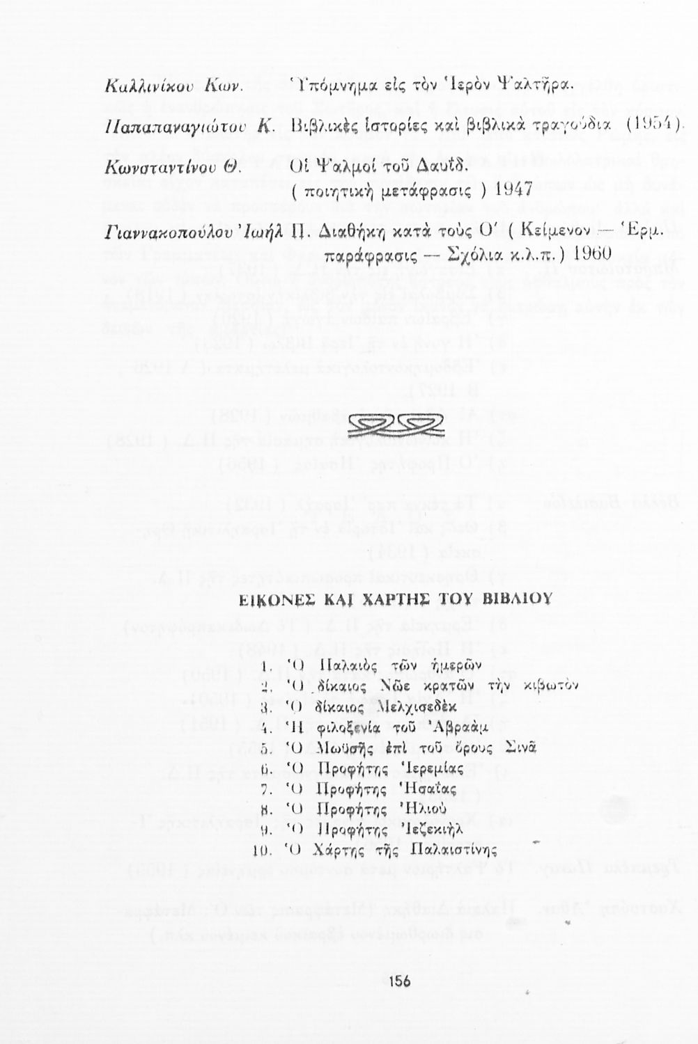 Σχολικό εγχειρίδιο Θρησκευτικών που συνιστά μία εξιστόρηση της Παλαιάς Διαθήκης από τη δημιουργία του κόσμου ως την υποταγή των Εβραίων στους Ρωμαίους. Περιέχει και στοιχεία γεωγραφίας της Παλαιστίνης.