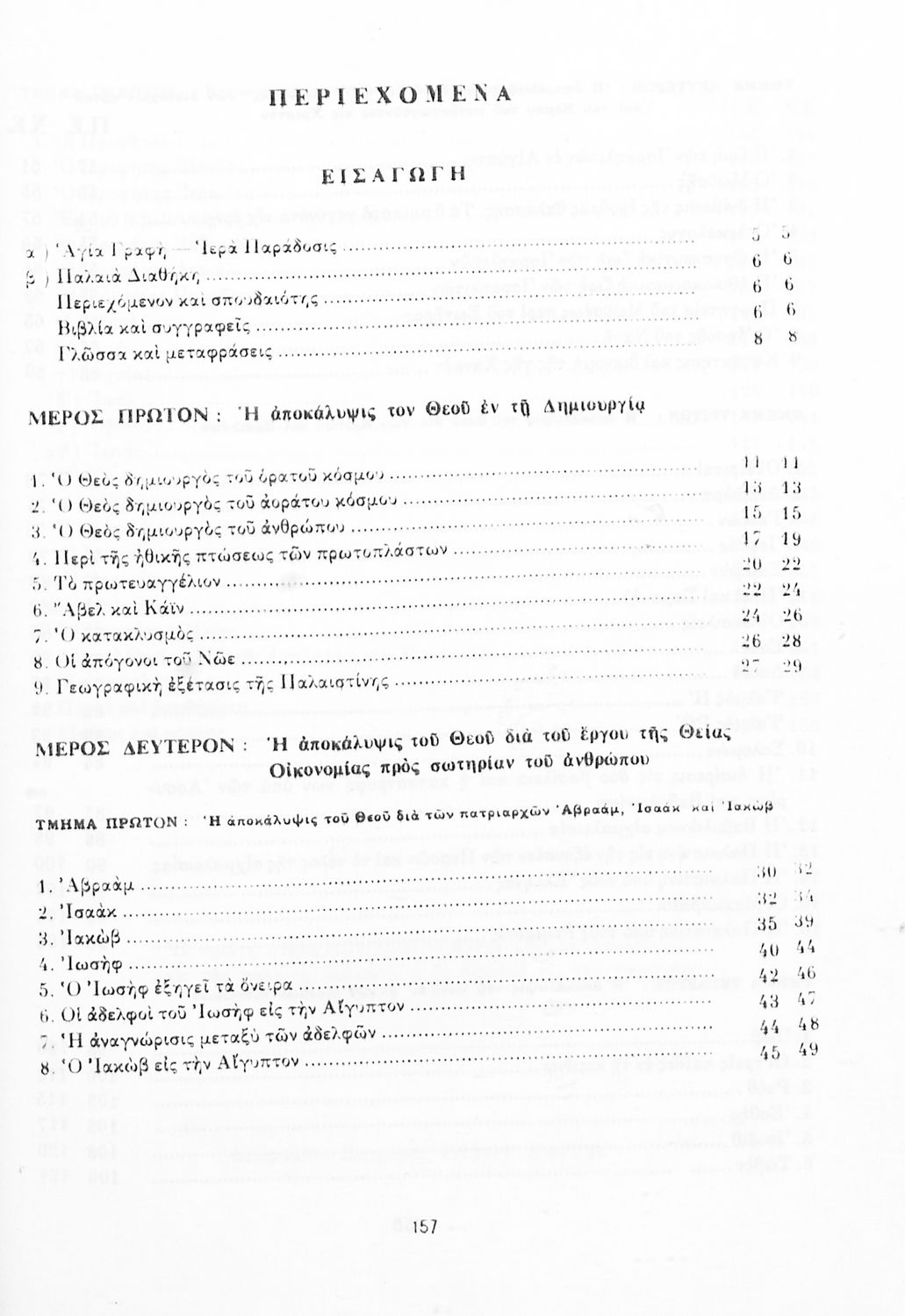 Σχολικό εγχειρίδιο Θρησκευτικών που συνιστά μία εξιστόρηση της Παλαιάς Διαθήκης από τη δημιουργία του κόσμου ως την υποταγή των Εβραίων στους Ρωμαίους. Περιέχει και στοιχεία γεωγραφίας της Παλαιστίνης.