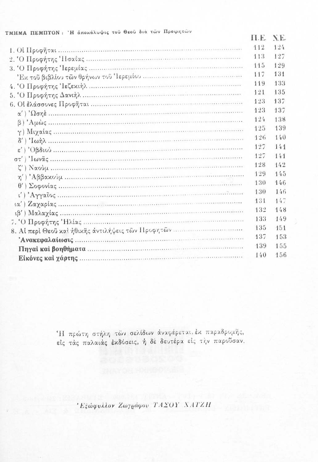 Σχολικό εγχειρίδιο Θρησκευτικών που συνιστά μία εξιστόρηση της Παλαιάς Διαθήκης από τη δημιουργία του κόσμου ως τους Προφήτες. Φέρει το σύμβολο της δικτατορίας.
