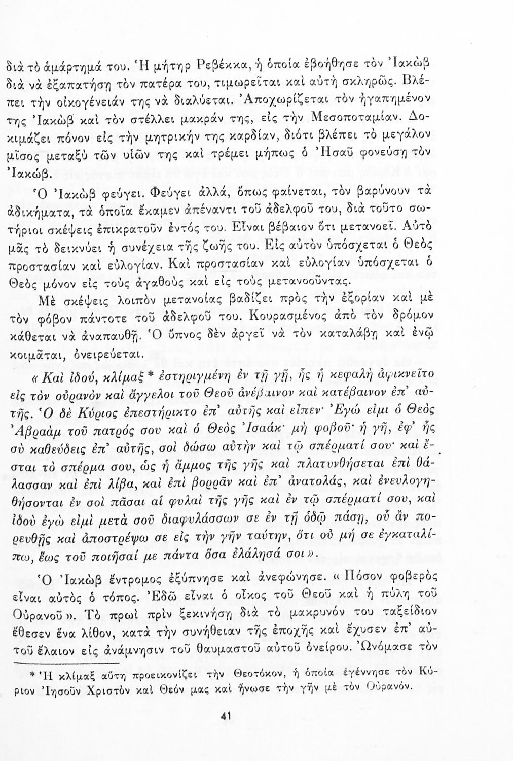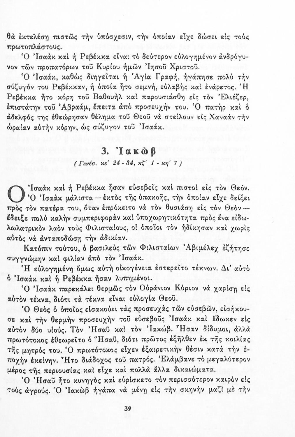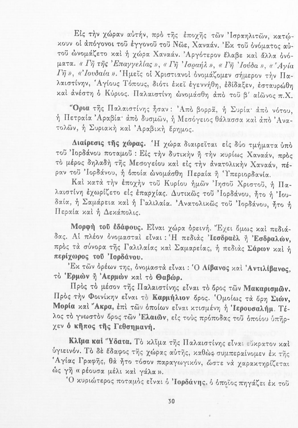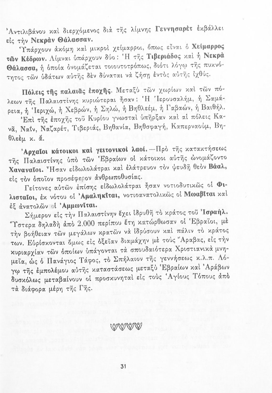 Σχολικό εγχειρίδιο Θρησκευτικών που συνιστά μία εξιστόρηση της Παλαιάς Διαθήκης από τη δημιουργία του κόσμου ως την υποταγή των Εβραίων στους Ρωμαίους. Περιέχει και στοιχεία γεωγραφίας της Παλαιστίνης.