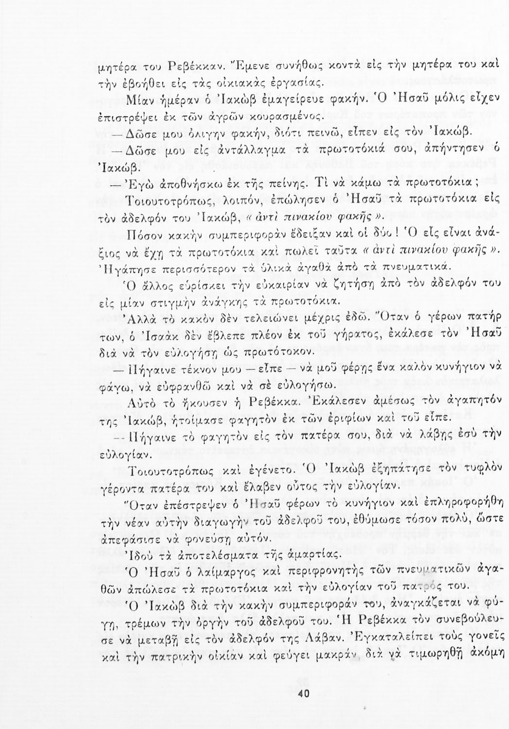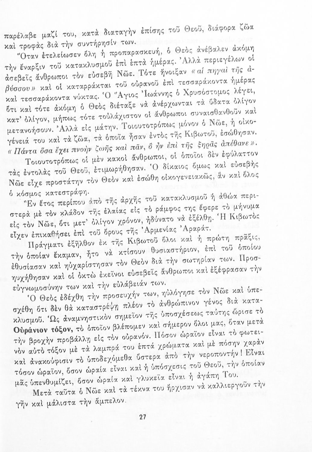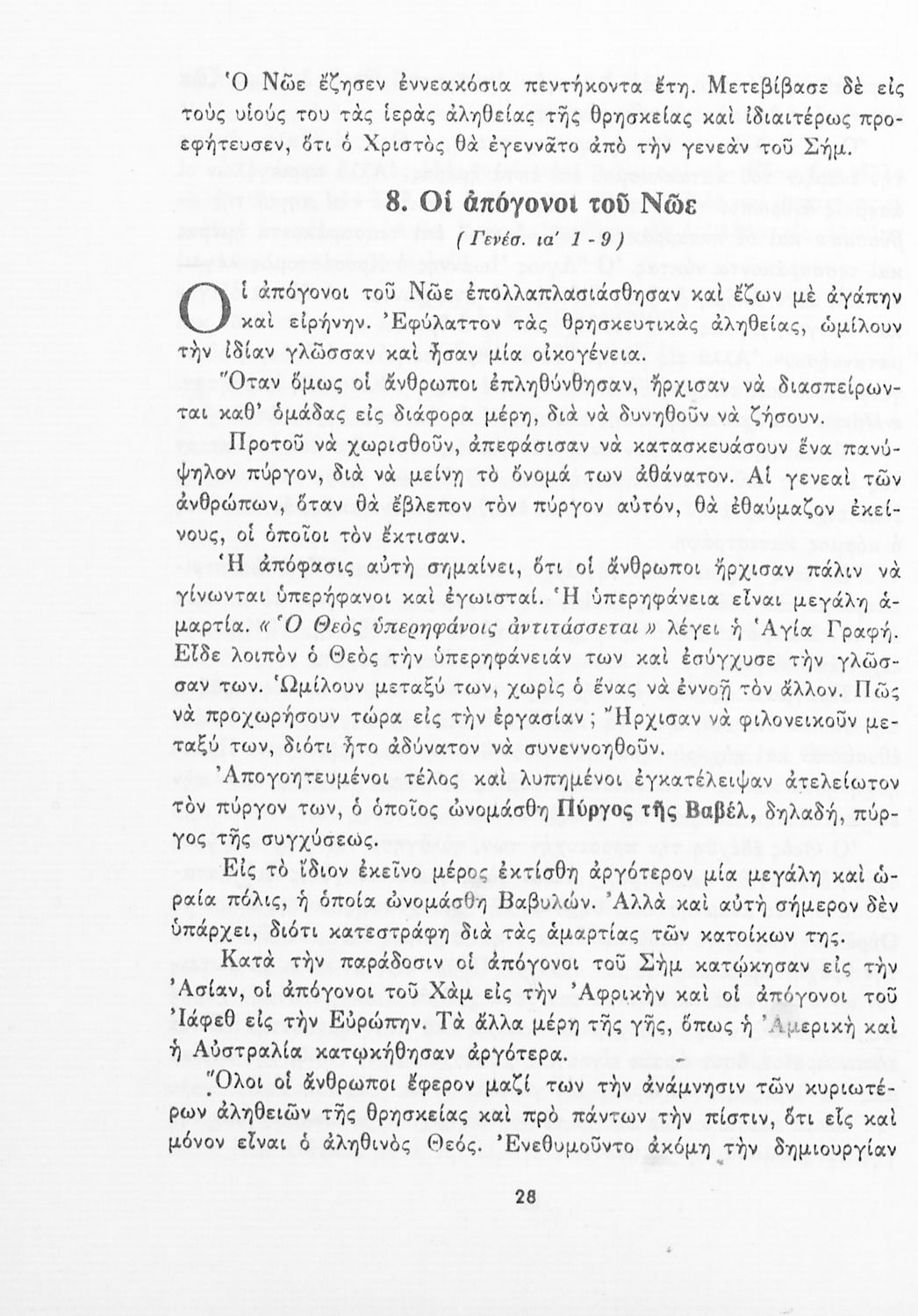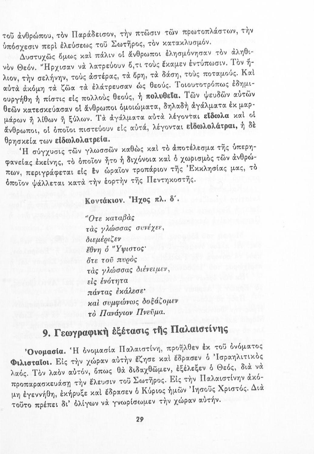 Σχολικό εγχειρίδιο Θρησκευτικών που συνιστά μία εξιστόρηση της Παλαιάς Διαθήκης από τη δημιουργία του κόσμου ως την υποταγή των Εβραίων στους Ρωμαίους. Περιέχει και στοιχεία γεωγραφίας της Παλαιστίνης.