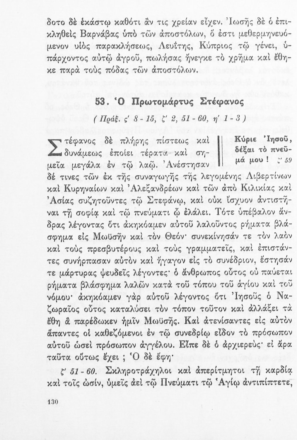 Σχολικό εγχειρίδιο Θρησκευτικών που περιλαμβάνει εισαγωγικά σχόλια στα βιβλία της Παλαιάς και Καινής Διαθήκης, περικοπές, ερμηνευτικές και πραγματολογικές σημειώσεις και πίνακα με τα κυριότερα ονόματα. Φέρει το σύμβολο της δικτατορίας.