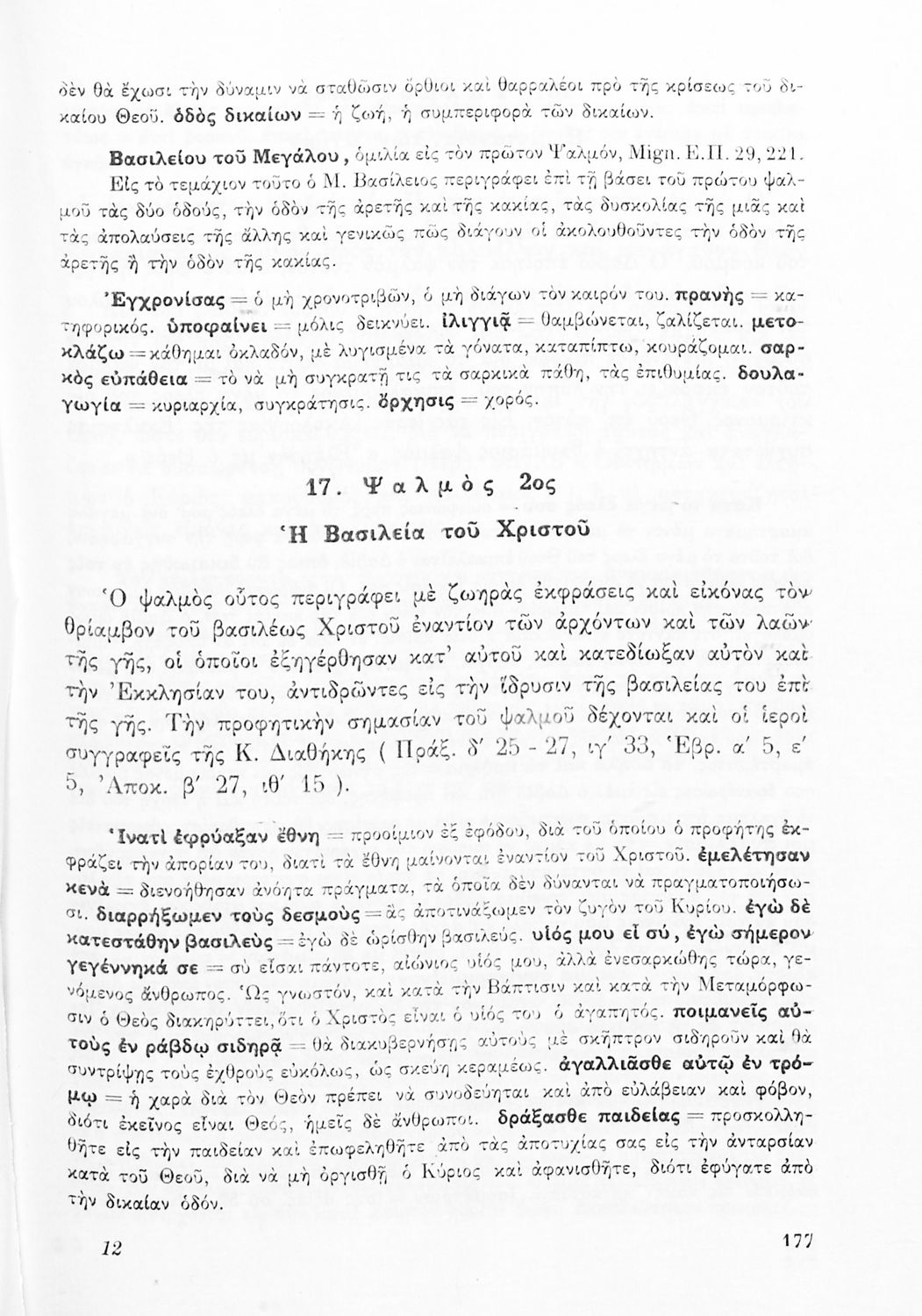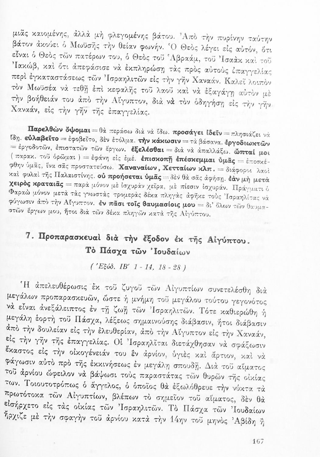 Σχολικό εγχειρίδιο Θρησκευτικών που περιλαμβάνει εισαγωγικά σχόλια στα βιβλία της Παλαιάς και Καινής Διαθήκης, περικοπές, ερμηνευτικές και πραγματολογικές σημειώσεις και πίνακα με τα κυριότερα ονόματα. Φέρει το σύμβολο της δικτατορίας.