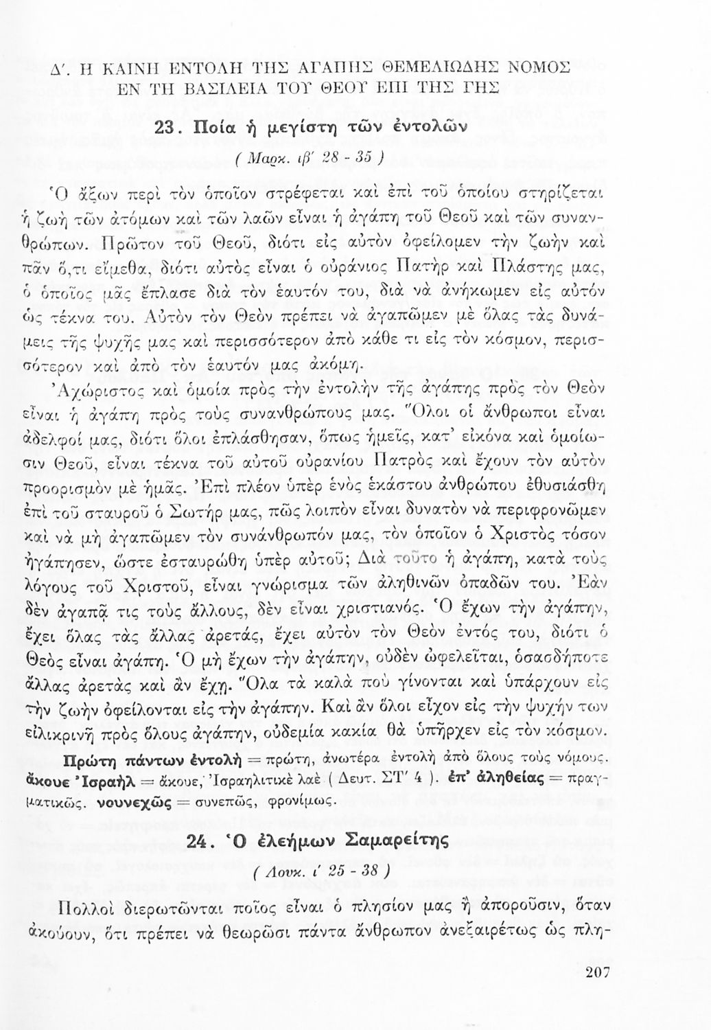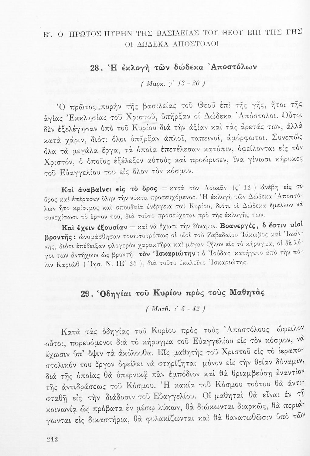 520 ## _aΣχολικό εγχειρίδιο Θρησκευτικών που περιλαμβάνει εισαγωγικά σχόλια στα βιβλία της Παλαιάς και Καινής Διαθήκης, περικοπές, ερμηνευτικές και πραγματολογικές σημειώσεις και πίνακα με τα κυριότερα ονόματα. Φέρει το σύμβολο της δικτατορίας.