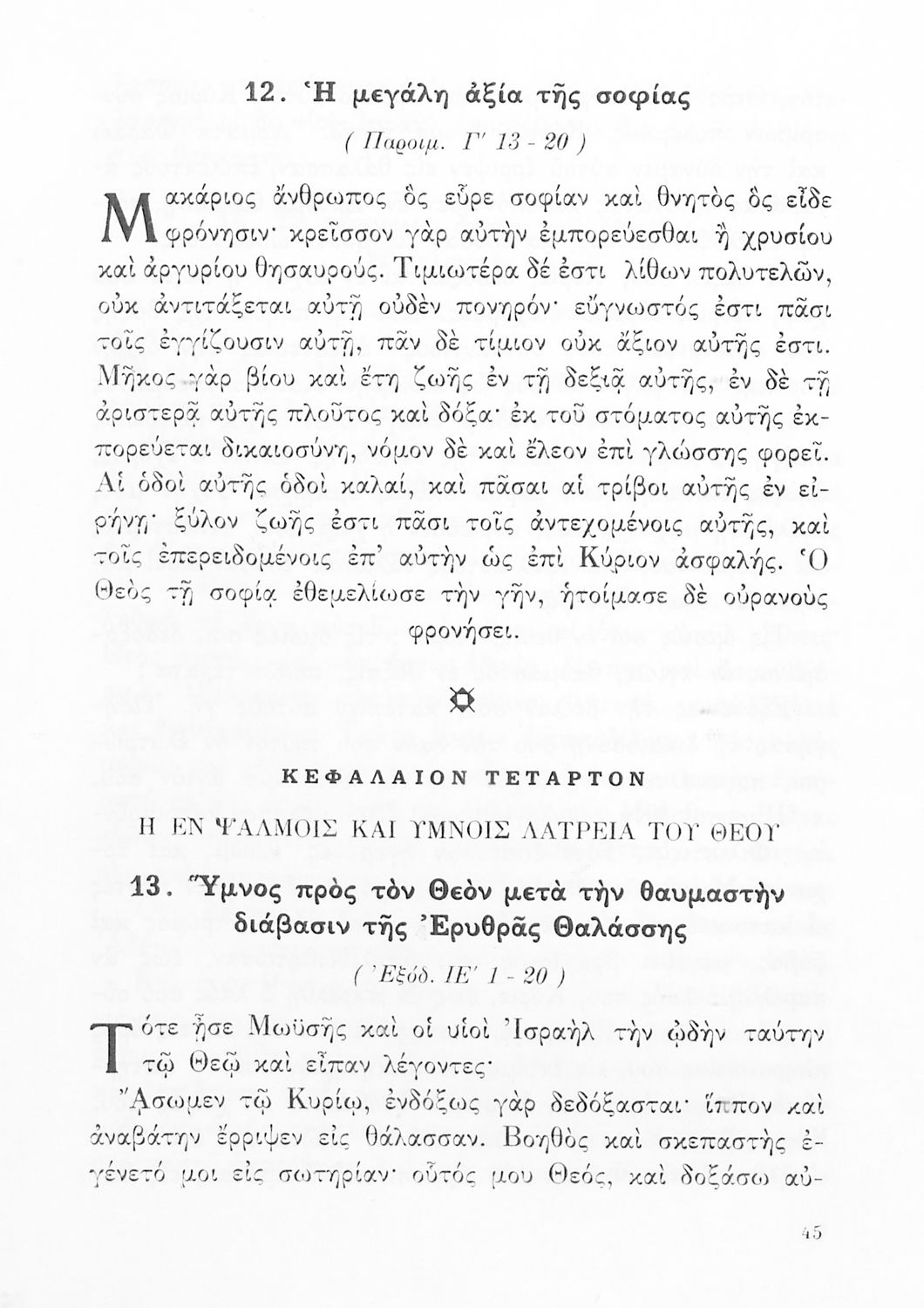 Σχολικό εγχειρίδιο Θρησκευτικών που περιλαμβάνει εισαγωγικά σχόλια στα βιβλία της Παλαιάς και Καινής Διαθήκης, περικοπές, ερμηνευτικές και πραγματολογικές σημειώσεις και πίνακα με τα κυριότερα ονόματα. Φέρει το σύμβολο της δικτατορίας.