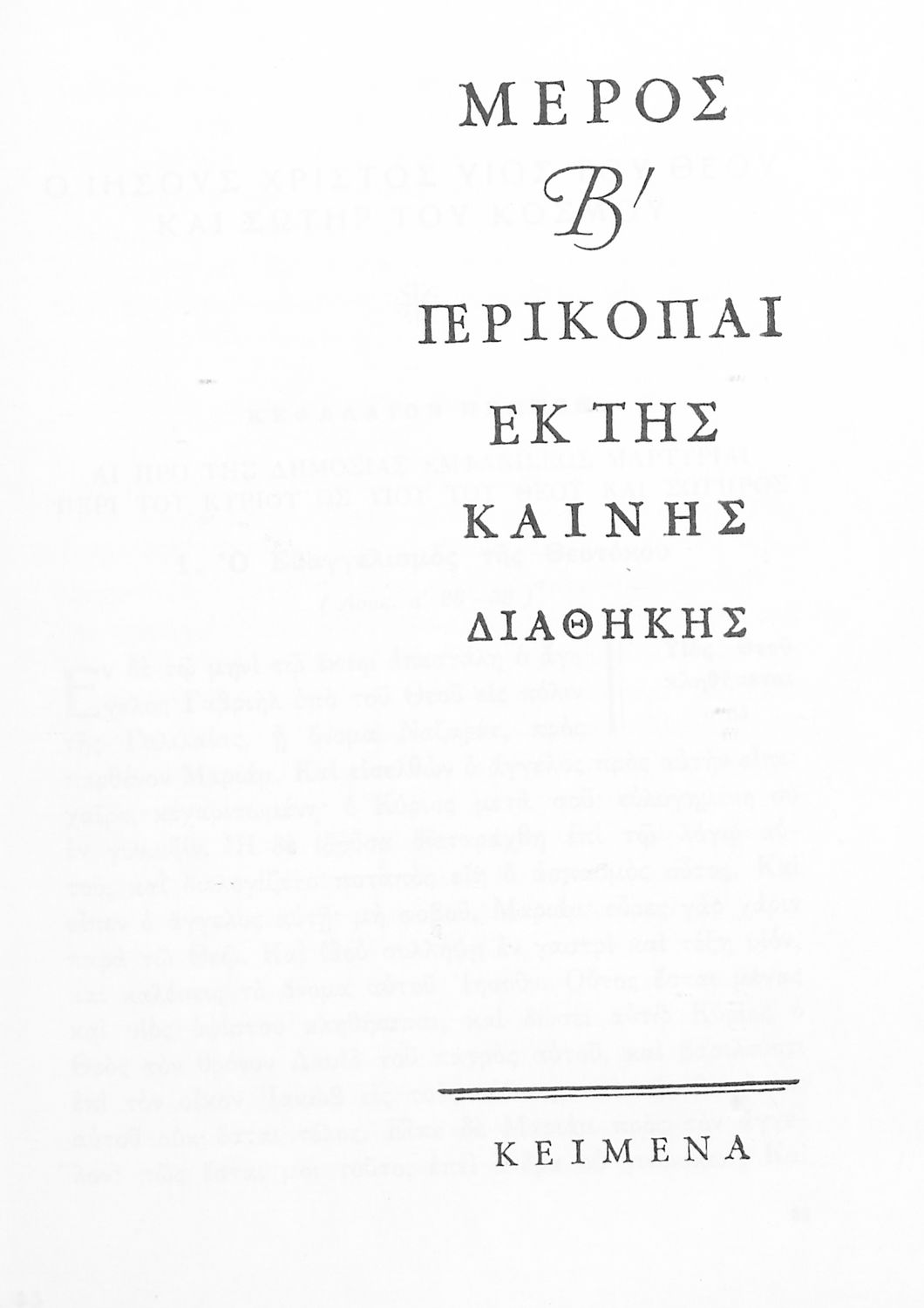 Σχολικό εγχειρίδιο Θρησκευτικών που περιλαμβάνει εισαγωγικά σχόλια στα βιβλία της Παλαιάς και Καινής Διαθήκης, περικοπές, ερμηνευτικές και πραγματολογικές σημειώσεις και πίνακα με τα κυριότερα ονόματα. Φέρει το σύμβολο της δικτατορίας.