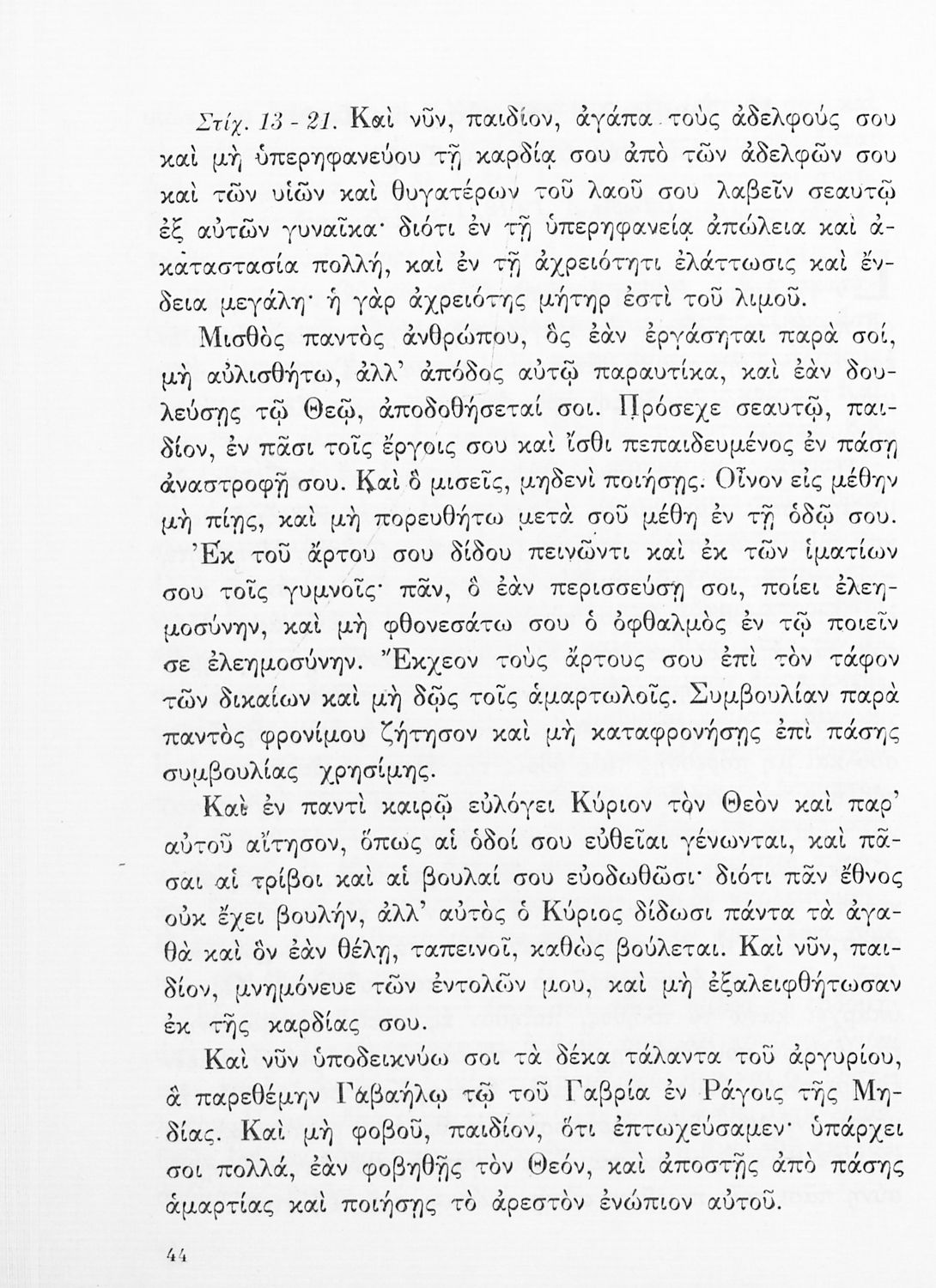 Ερμηνεία εκλεκτών περικοπών εκ της Παλαιάς και Καινής Διαθήκης.