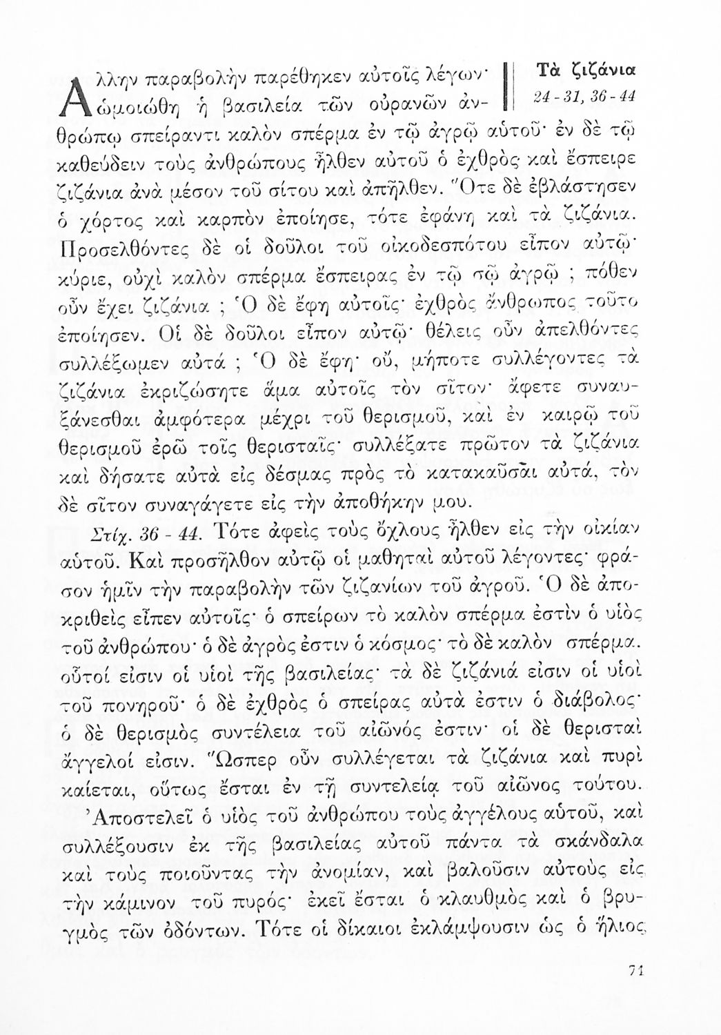 Ερμηνεία εκλεκτών περικοπών εκ της Παλαιάς και Καινής Διαθήκης.