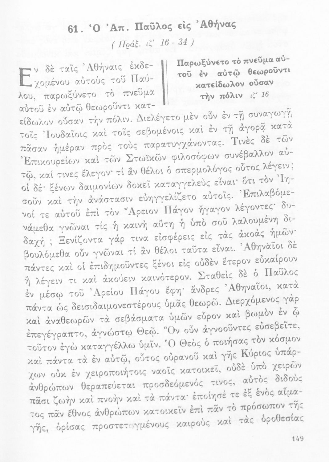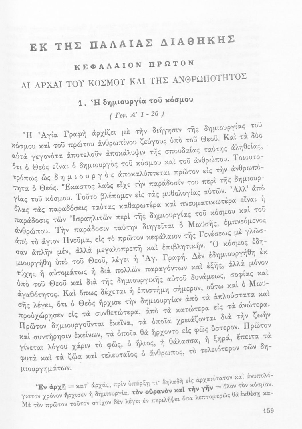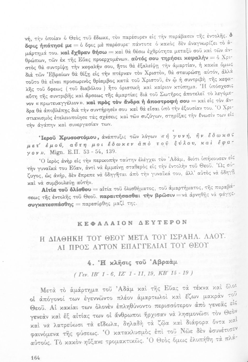 Σχολικό εγχειρίδιο Θρησκευτικών που περιλαμβάνει εισαγωγικά σχόλια στα βιβλία της Παλαιάς και Καινής Διαθήκης, περικοπές, ερμηνευτικές και πραγματολογικές σημειώσεις και πίνακα με τα κυριότερα ονόματα.