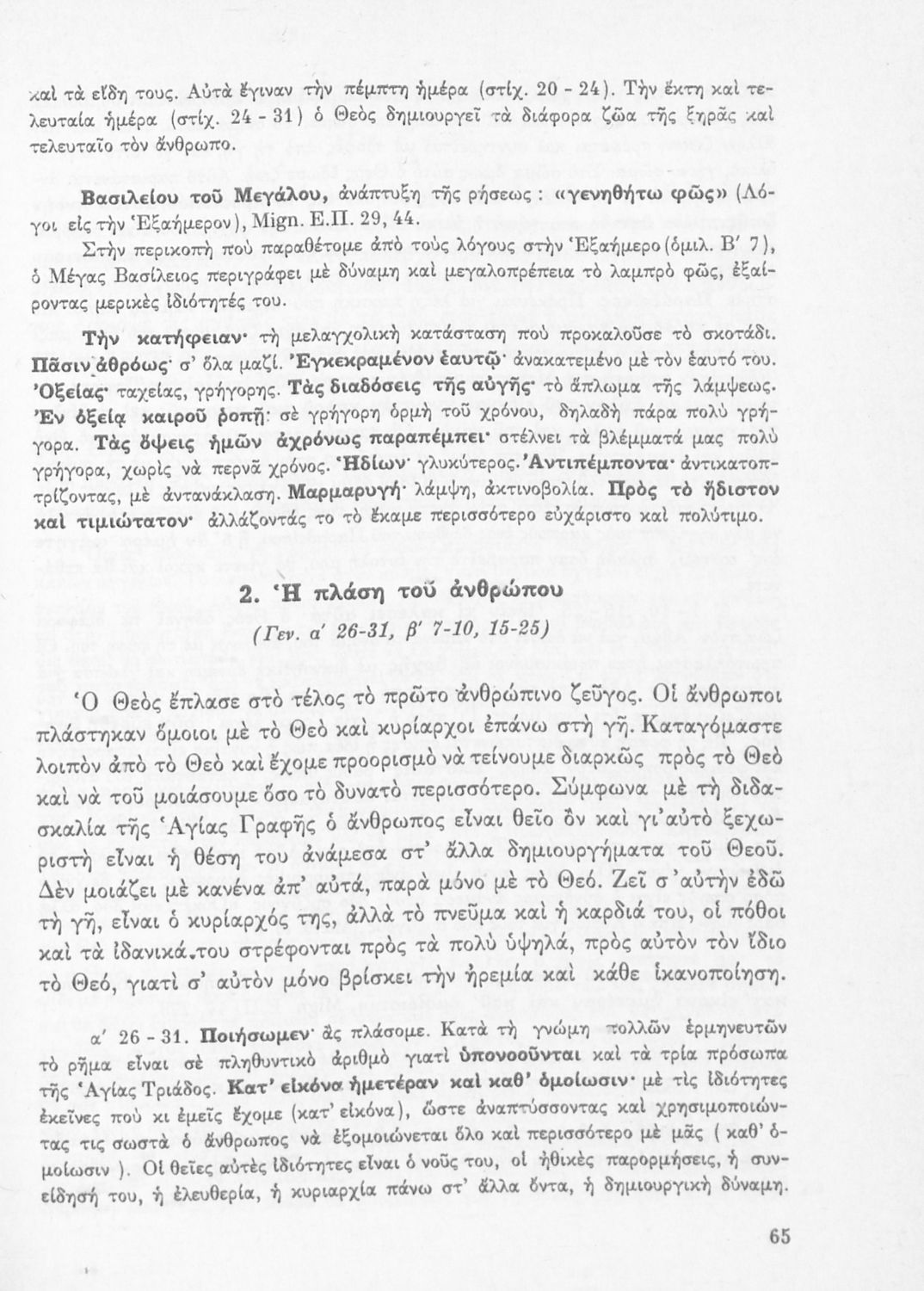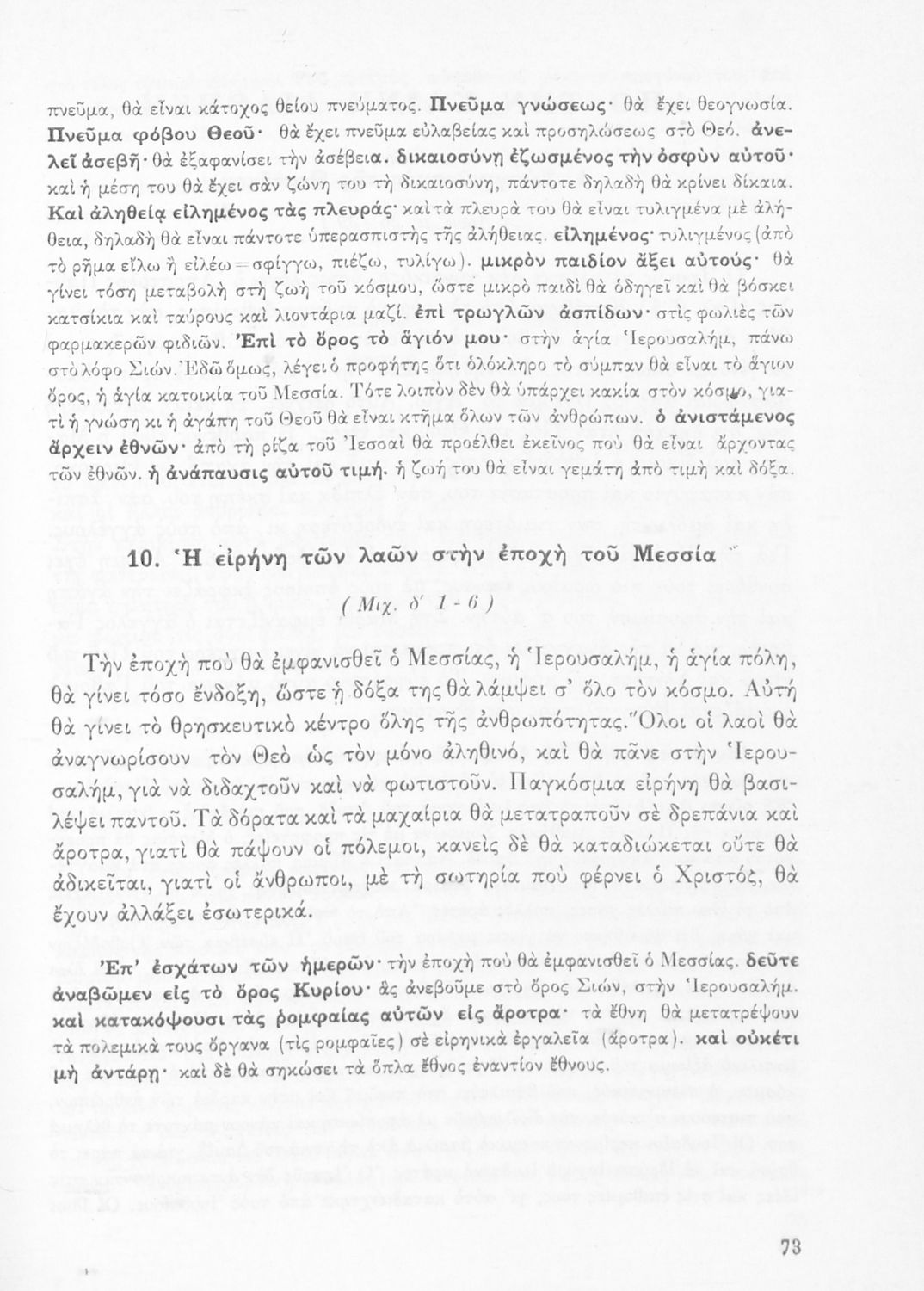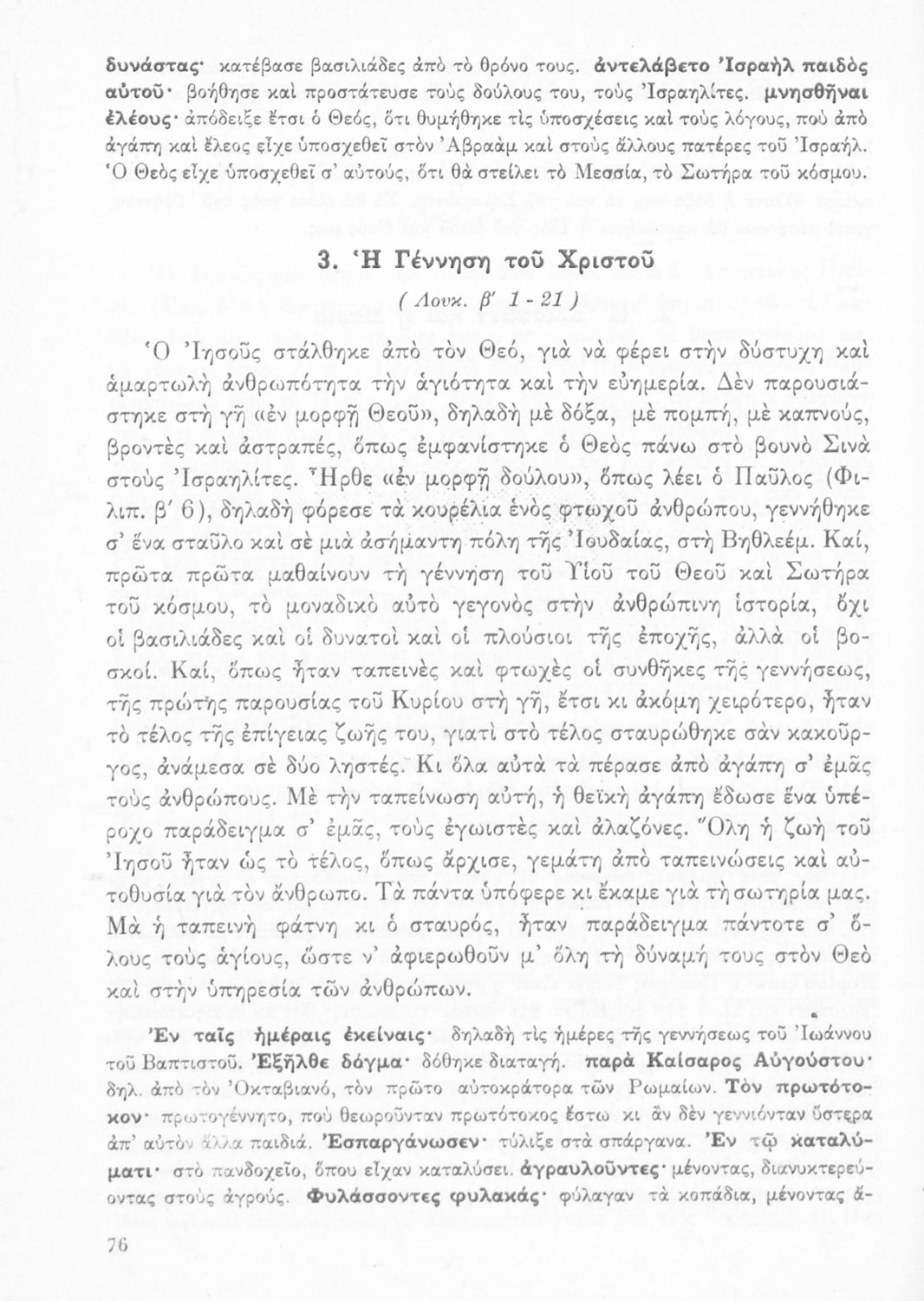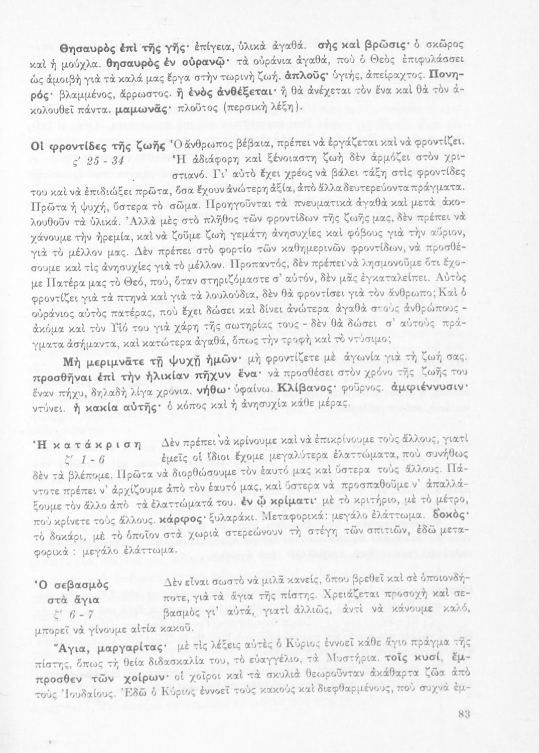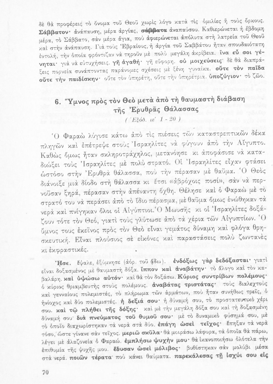 Σχολικό εγχειρίδιο Θρησκευτικών που περιλαμβάνει εισαγωγικά σχόλια στα βιβλία της Παλαιάς και Καινής Διαθήκης, περικοπές, ερμηνευτικές και πραγματολογικές σημειώσεις και πίνακα με τα κυριότερα ονόματα.