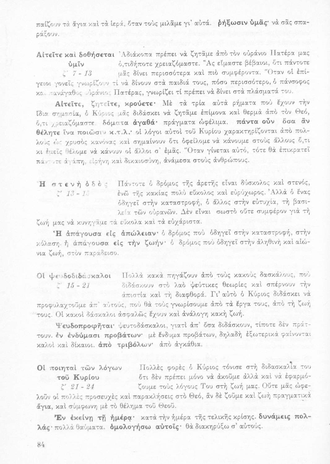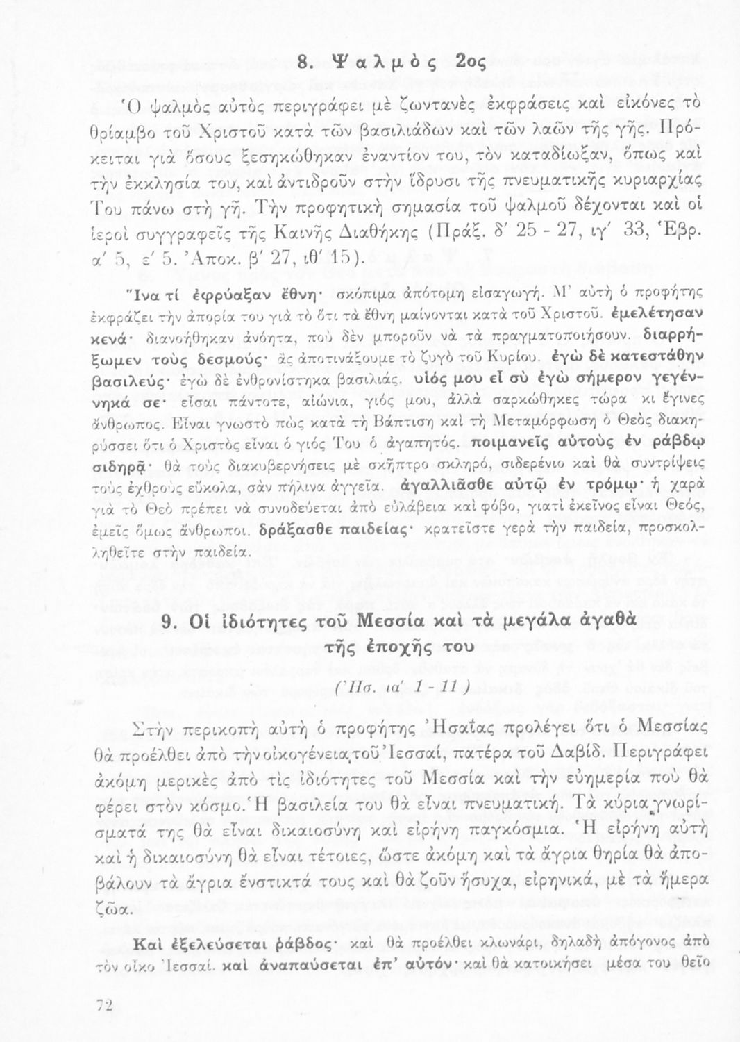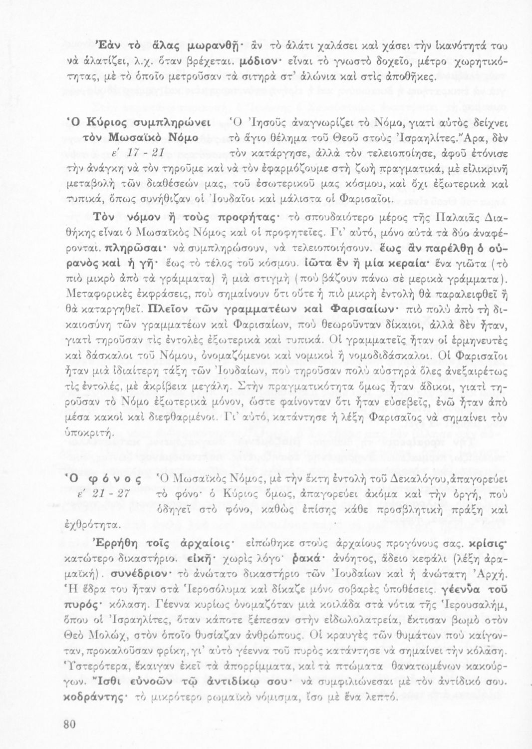 Βαθμίδα εκπαίδευσης: Δευτεροβάθμια Μάθημα: Θρησκευτικά Γλώσσα: Δημοτική Παρουσίαση περιεχομένου: Σχολικό εγχειρίδιο Θρησκευτικών που περιλαμβάνει εισαγωγικά σχόλια στα βιβλία της Παλαιάς και Καινής Διαθήκης, περικοπές, ερμηνευτικές και πραγματολογικές σημειώσεις και πίνακα με τα κυριότερα ονόματα. |