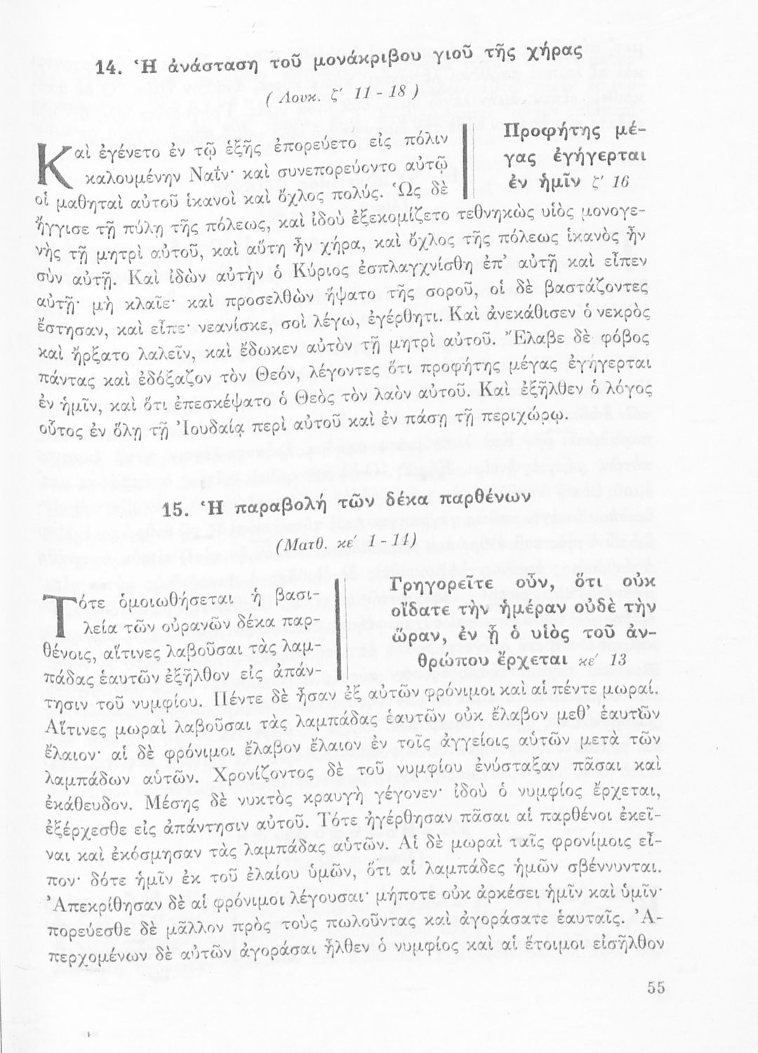 Σχολικό εγχειρίδιο Θρησκευτικών Γ΄ Γυμνασίου που περιλαμβάνει εισαγωγικά σχόλια στα βιβλία της Παλαιάς και Καινής Διαθήκης, περικοπές, ερμηνευτικές και πραγματολογικές σημειώσεις και πίνακα με τα κυριότερα ονόματα.