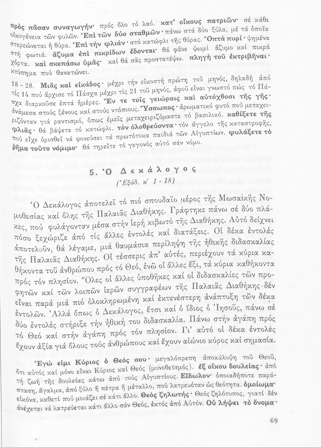 Σχολικό εγχειρίδιο Θρησκευτικών για την Ε΄ Οκταταξίου και Εξατάξιου Γυμνασίου που περιέχει εισαγωγικά σχόλια στα βιβλία της Παλαιάς και Καινής Διαθήκης, περικοπές, ερμηνευτικές και πραγματολογικές σημειώσεις