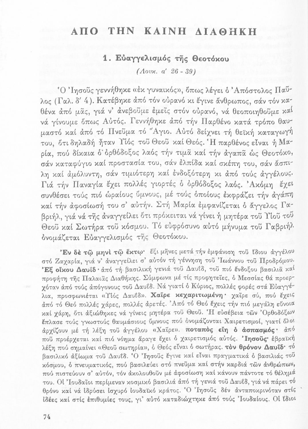 Σχολικό εγχειρίδιο Θρησκευτικών για την Γ΄ Γυμνασίου, τα Διδασκαλεία και τα Ανώτερα Παρθεναγωγεία που περιέχει περικοπές από τα βιβλία της Καινής Διαθήκης και ερμηνευτικές σημειώσεις.