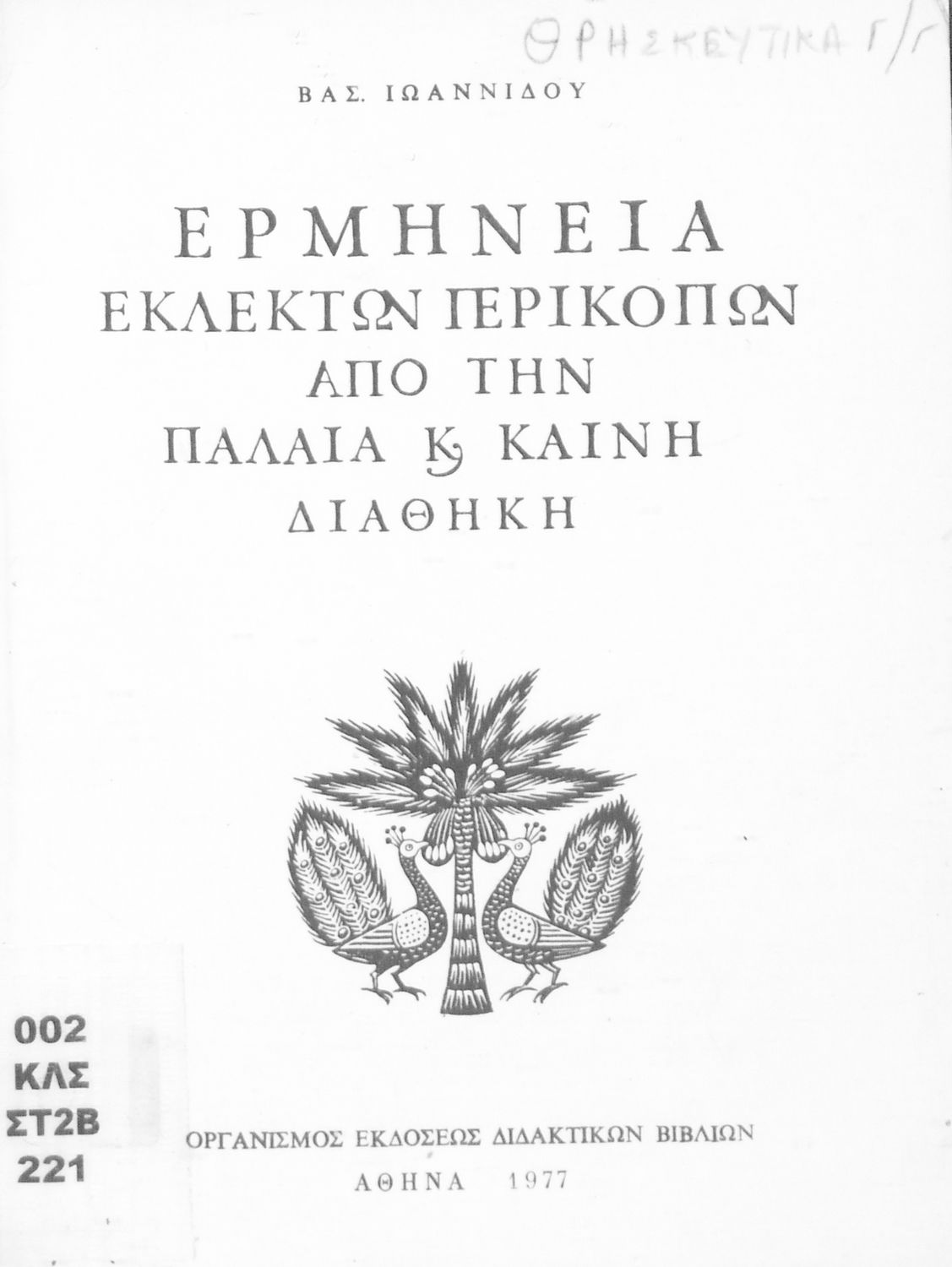 LDR 01320 2200217 4500 035 ## _a03-20556321 040 ## _aΒιβλιοθήκη της Βουλής των Ελλήνων 041 ## _ael 100 ## _aΒασ. Ιωαννίδης 110 ## _a20556321 245 0# _aΕρμηνεία εκλεκτών περικοπών από την Παλαιά και Καινή Διαθήκη Γ΄ Γυμνασίου 250 ## _a12η Έκδοση 260 ## _aΑθήνα _bΟργανισμός Εκδόσεως Διδακτικών Βιβλίων _c1977 300 ## _a102 _c20 520 ## _aΣχολικό εγχειρίδιο Θρησκευτικών Γ΄ Γυμνασίου που περιλαμβάνει εισαγωγικά σχόλια στα βιβλία της Παλαιάς και Καινής Διαθήκης, περικοπές, ερμηνευτικές και πραγματολογικές σημειώσεις και πίνακα με τα κυριότερα ονόματα. 521 ## _aΓ' Γυμνασίου 522 ## _aΕλλάδα 546 ## _aΔημοτική 563 ## _aΜαλακό Εξώφυλλο 583 ## _a2820/ 23-3-1977 _c1977 650 #4 _aΑβραάμ _aΑπόστολοι _aΘεοτόκος _aΙησούς _aΜέγας Βασίλειος _aΜυστικός Δείπνος _aΜωυσής _aΨαλμοί