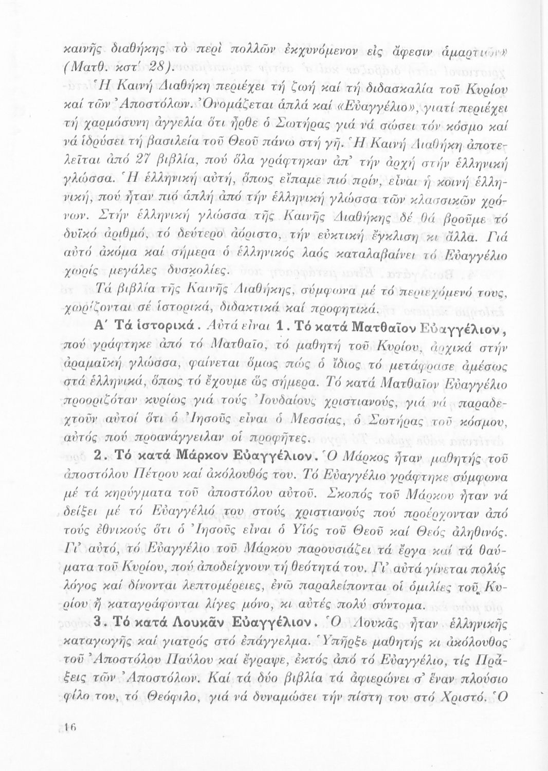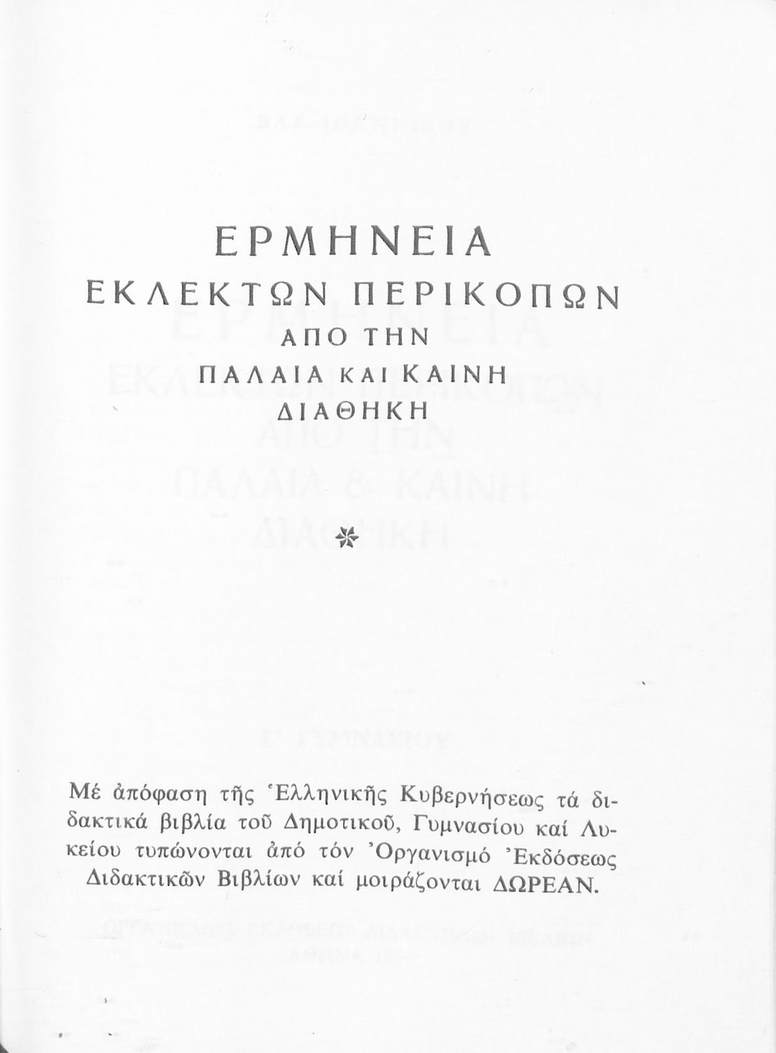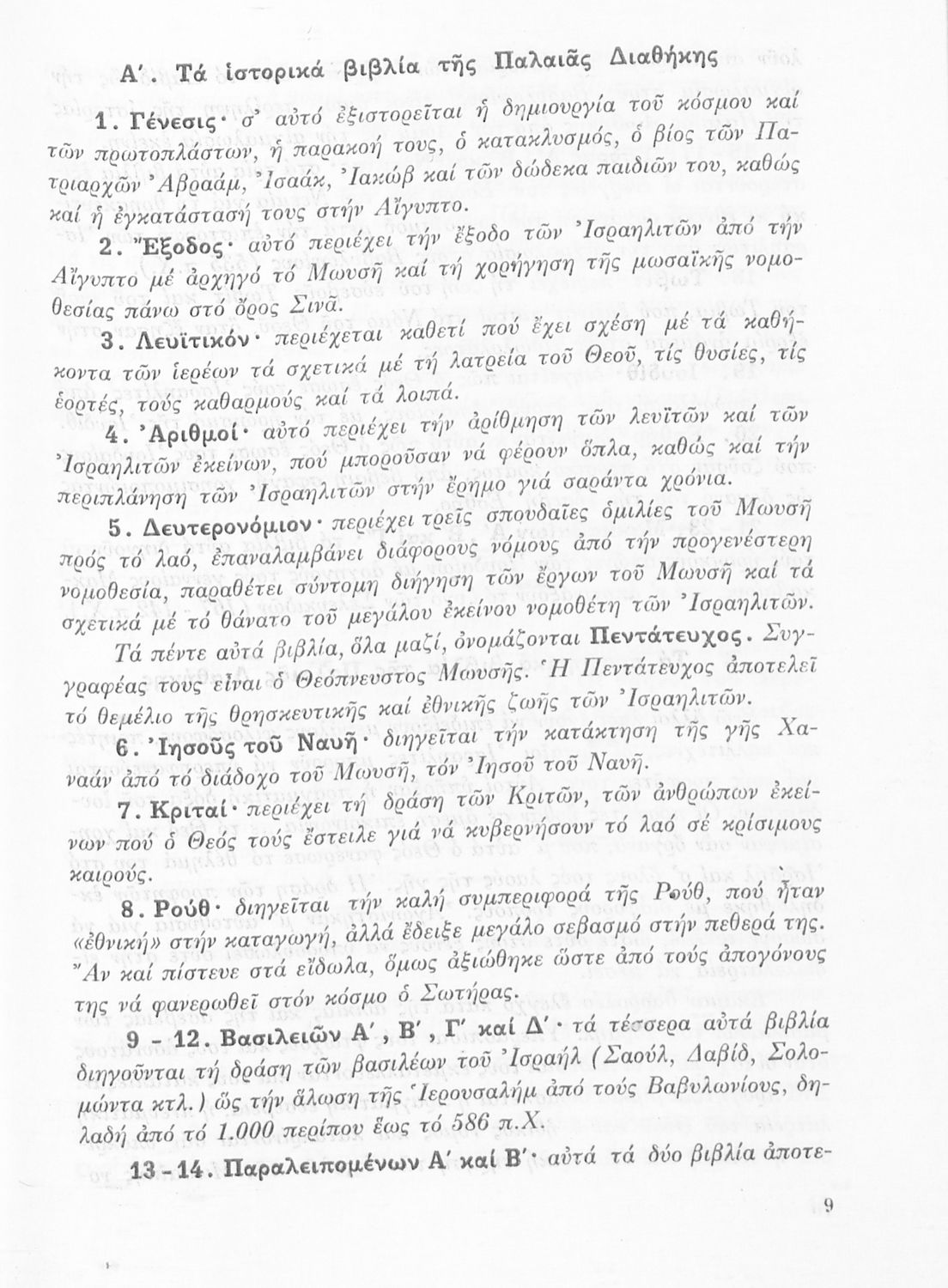Σχολικό εγχειρίδιο Θρησκευτικών Γ΄ Γυμνασίου που περιλαμβάνει εισαγωγικά σχόλια στα βιβλία της Παλαιάς και Καινής Διαθήκης, περικοπές, ερμηνευτικές και πραγματολογικές σημειώσεις και πίνακα με τα κυριότερα ονόματα.