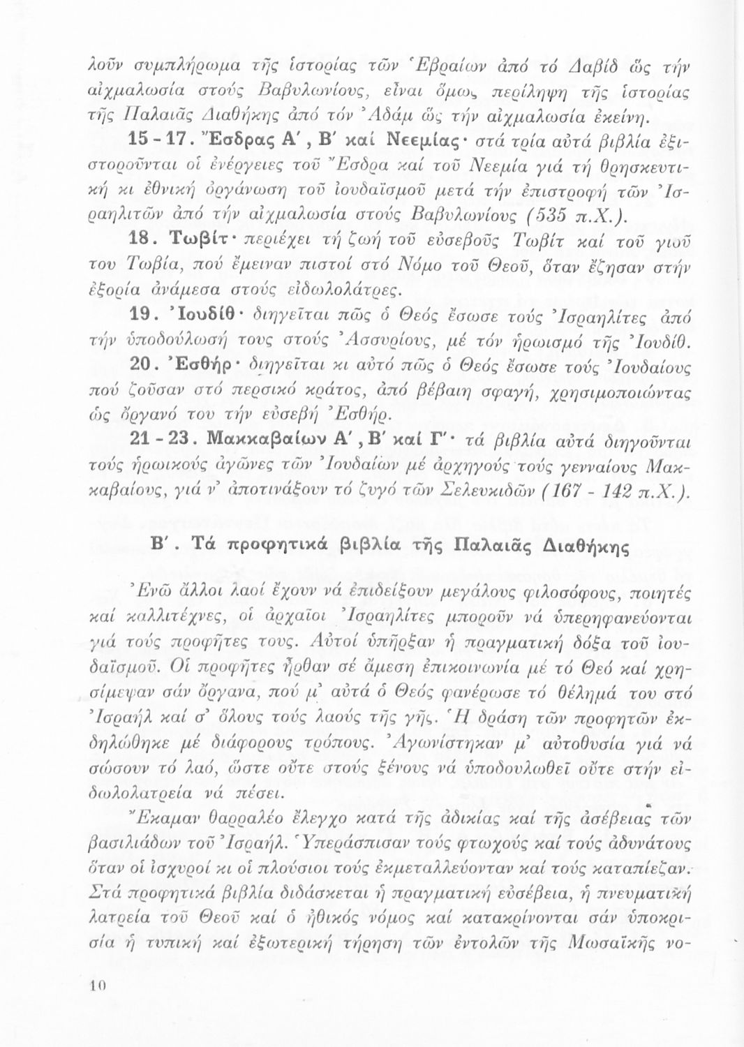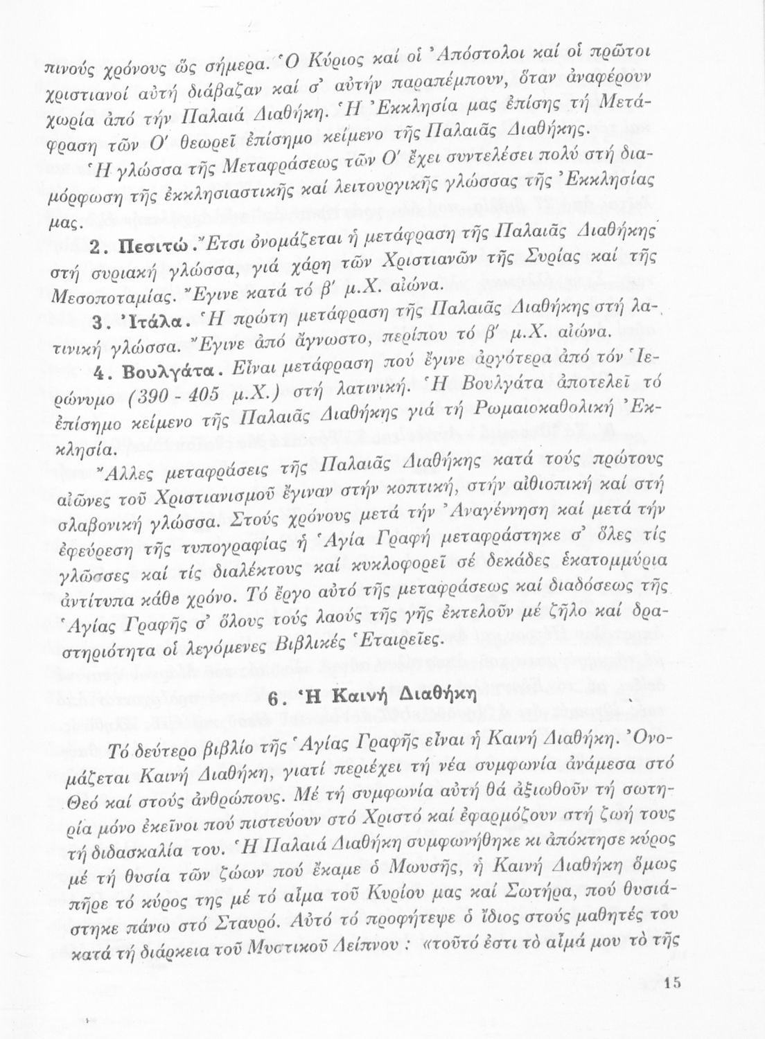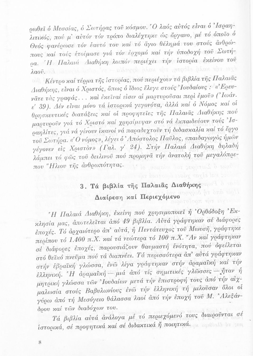 Σχολικό εγχειρίδιο Θρησκευτικών Γ΄ Γυμνασίου που περιλαμβάνει εισαγωγικά σχόλια στα βιβλία της Παλαιάς και Καινής Διαθήκης, περικοπές, ερμηνευτικές και πραγματολογικές σημειώσεις και πίνακα με τα κυριότερα ονόματα.
