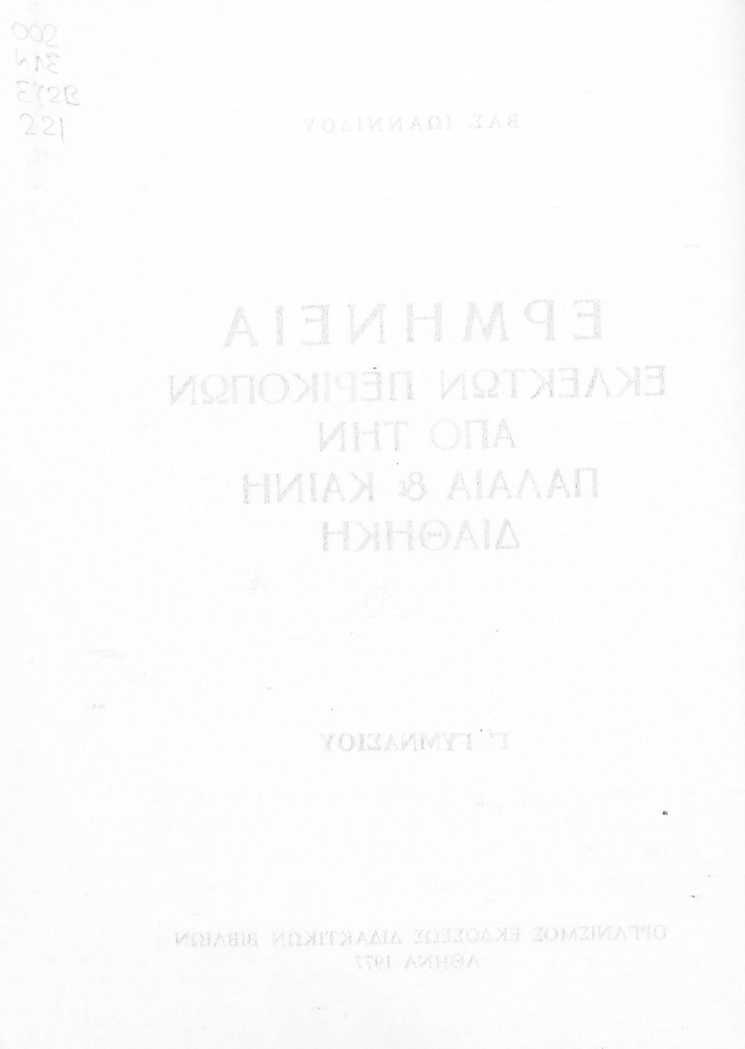 Εντοπισμός πρωτοτύπου: Βιβλιοθήκη της Βουλής των Ελλήνων Κωδικός βιβλιοθήκης: 20556321 |
