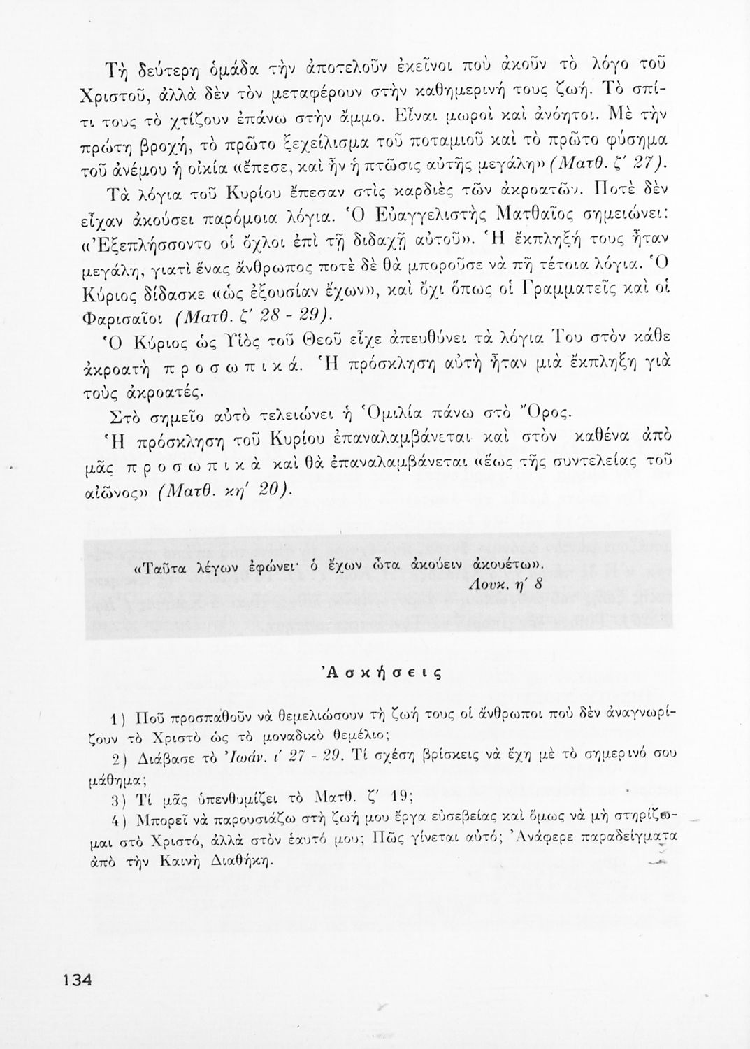 520 ## _aΣχολικό εγχειρίδιο Θρησκευτικών Β' Γυμνασίου που περιλαμβάνει τη διδασκαλία του Ιησού Χριστού και την ιστορία της δημιουργίας, της εδραίωσης και της εξάπλωσης της χριστιανικής εκκλησίας από την εποχή των Αποστόλων μέχρι τη συγκρότηση του Παγκόσμιου Συμβουλίου Εκκλησιών.