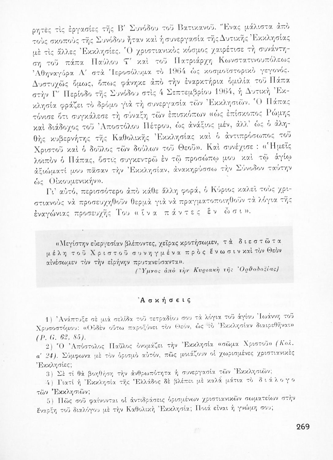 Σχολικό εγχειρίδιο Θρησκευτικών Β' Γυμνασίου που περιλαμβάνει τη διδασκαλία του Ιησού Χριστού και την ιστορία της δημιουργίας, της εδραίωσης και της εξάπλωσης της χριστιανικής εκκλησίας από την εποχή των Αποστόλων μέχρι τη συγκρότηση του Παγκόσμιου Συμβουλίου Εκκλησιών.